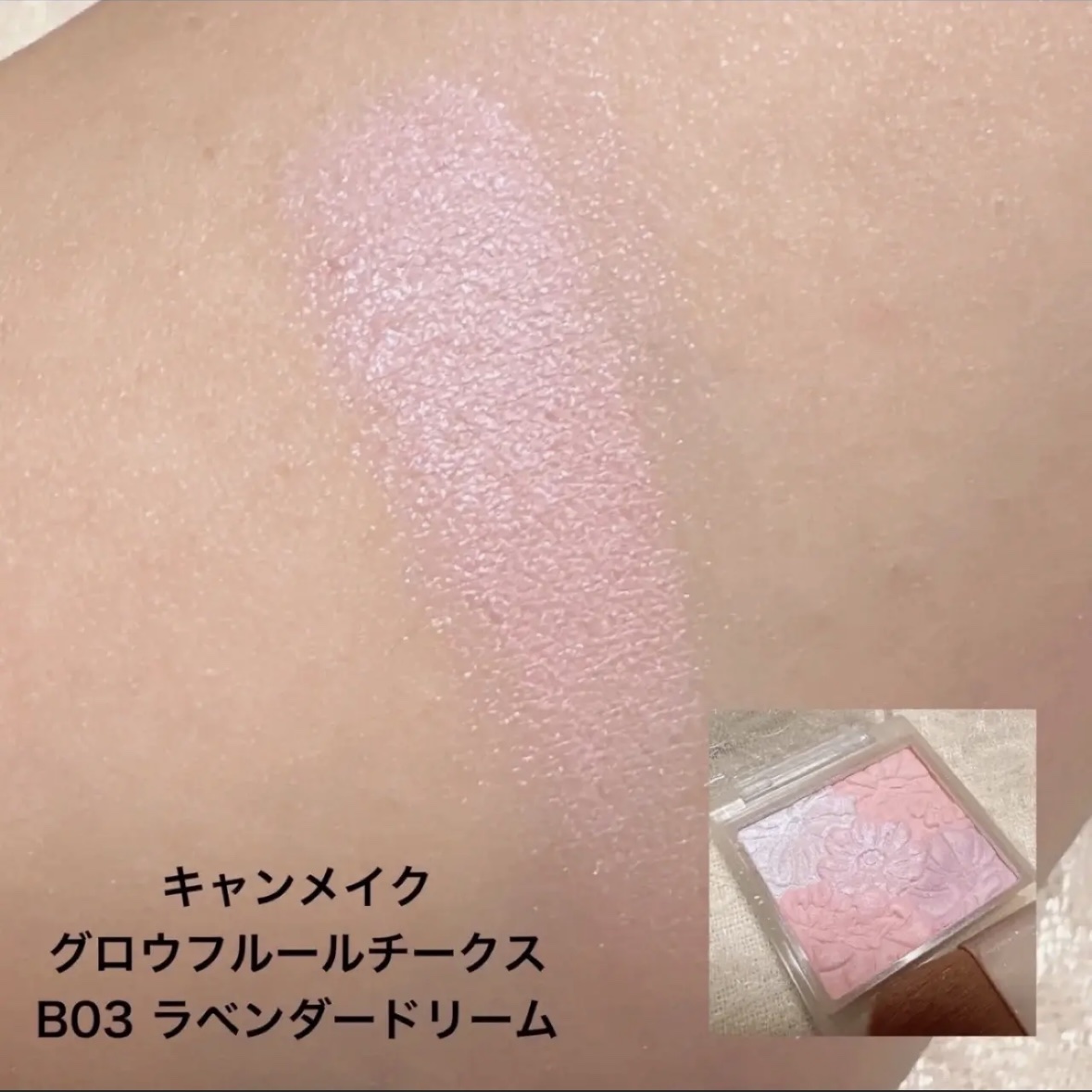 バブみミルク感溢れるふわチーク。青みピンク白みピンクのチークは1つ持っていると便利◎ 毛穴にフィルターをかけてくれる感じも良き◎ 白みがかったミルキーなピンクカラー♡ しっとりとしたマットな粉質で、白みもありつつ血色感をふわっとプラスし、毛穴をぼかして肌をきれいに見せてくれるチーク。 多幸感いっぱいのピュアピンク♡ グロウタイプでほんのりツヤが出るものの、クルクルッと混ぜると苺ミルクのようなカラーでバブみ感が出せる可愛いカラー🍓