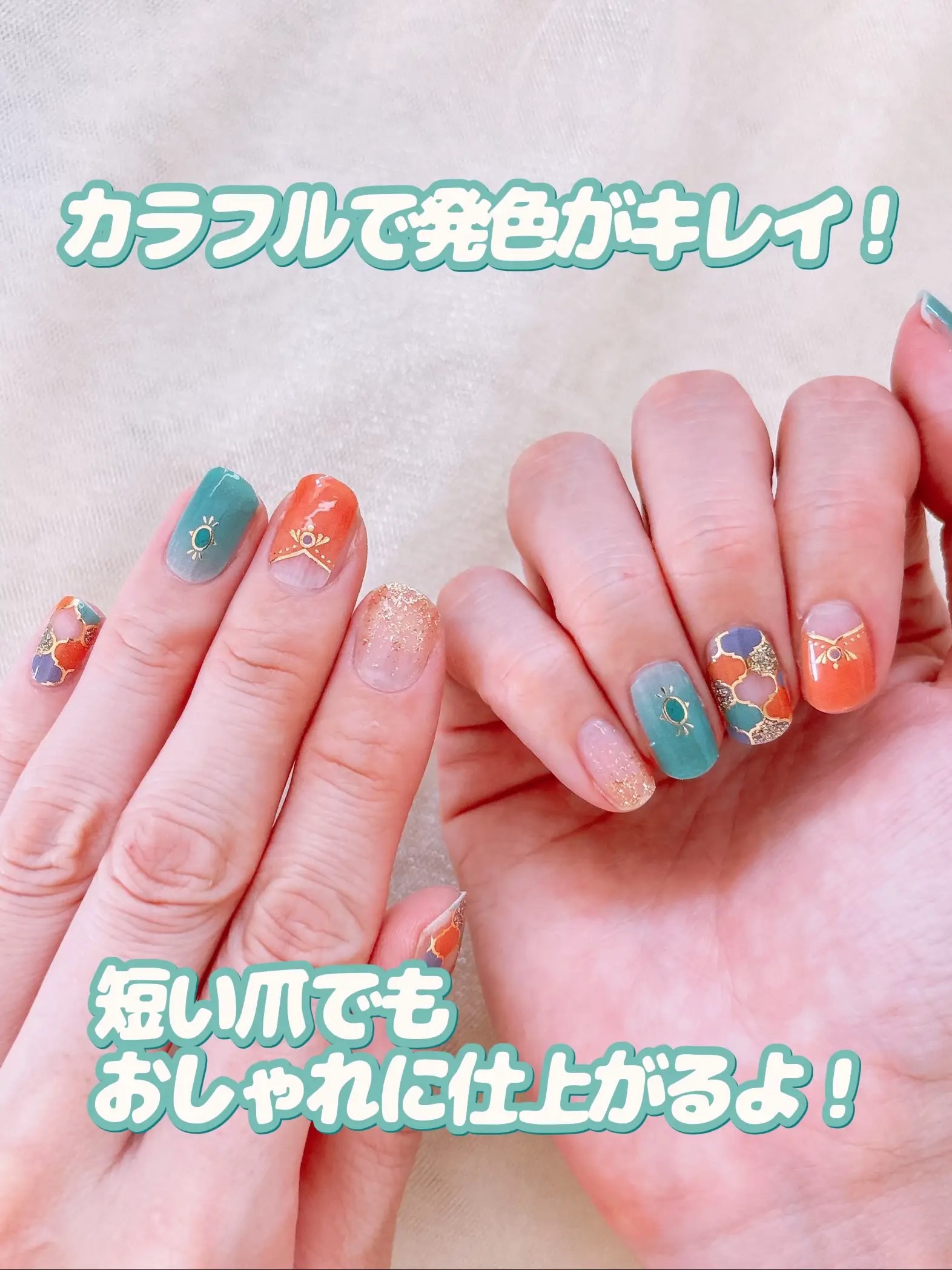 梅雨時期でも明るい気持ちで元気よく過ごしたい! そんな思いをかなえてくれるようなカラフルなデザインでした😊これから夏に向けておすすめです‼️ 使い方は爪に貼ってはみ出したところを削るだけ。 爪が短くて削りにくい時ははさみや爪切りで切ってもOK...