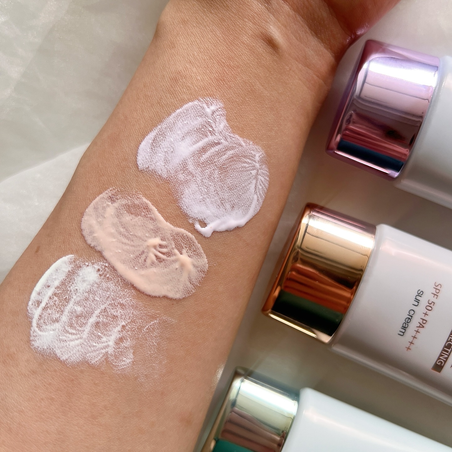 @dalba_japanウォータフルトーンアップサンクリーム一本でベースメイク完成するd'Albaの色で選べる日焼け止め3種・ピンク血色感を出したい時、ナチュラルに仕上げたい日初心者向けのアイテム・パープル補色効果で黄ぐすみを抑えトーンアッ...