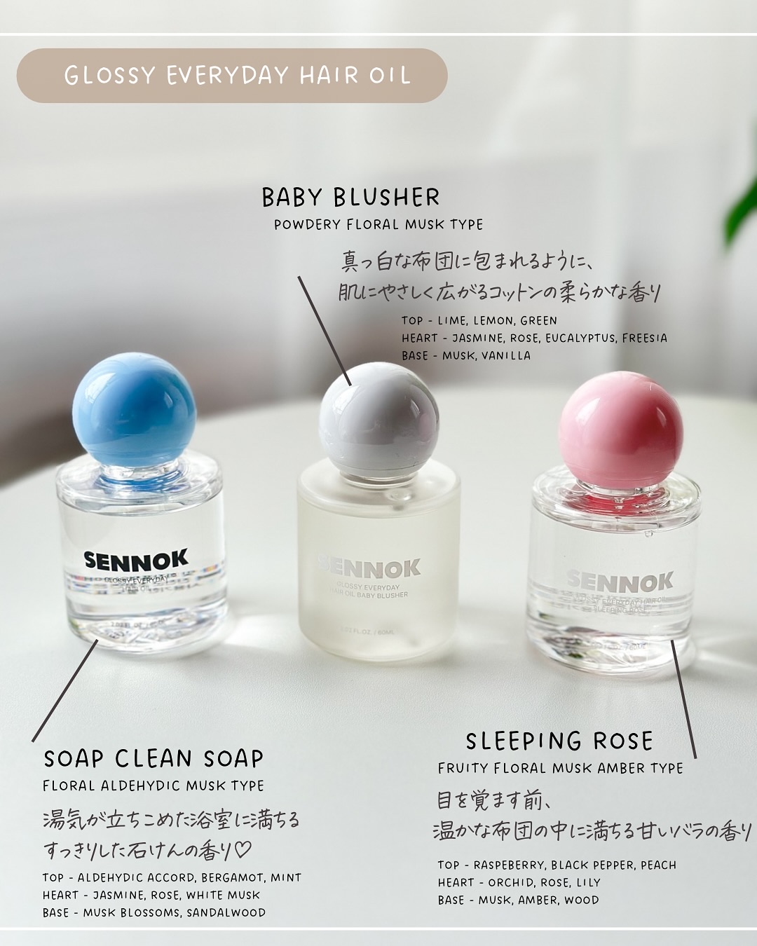 SENNOK グロッシー エブリデー ヘアオイル ソープクリーンソープ | 3,300円 |