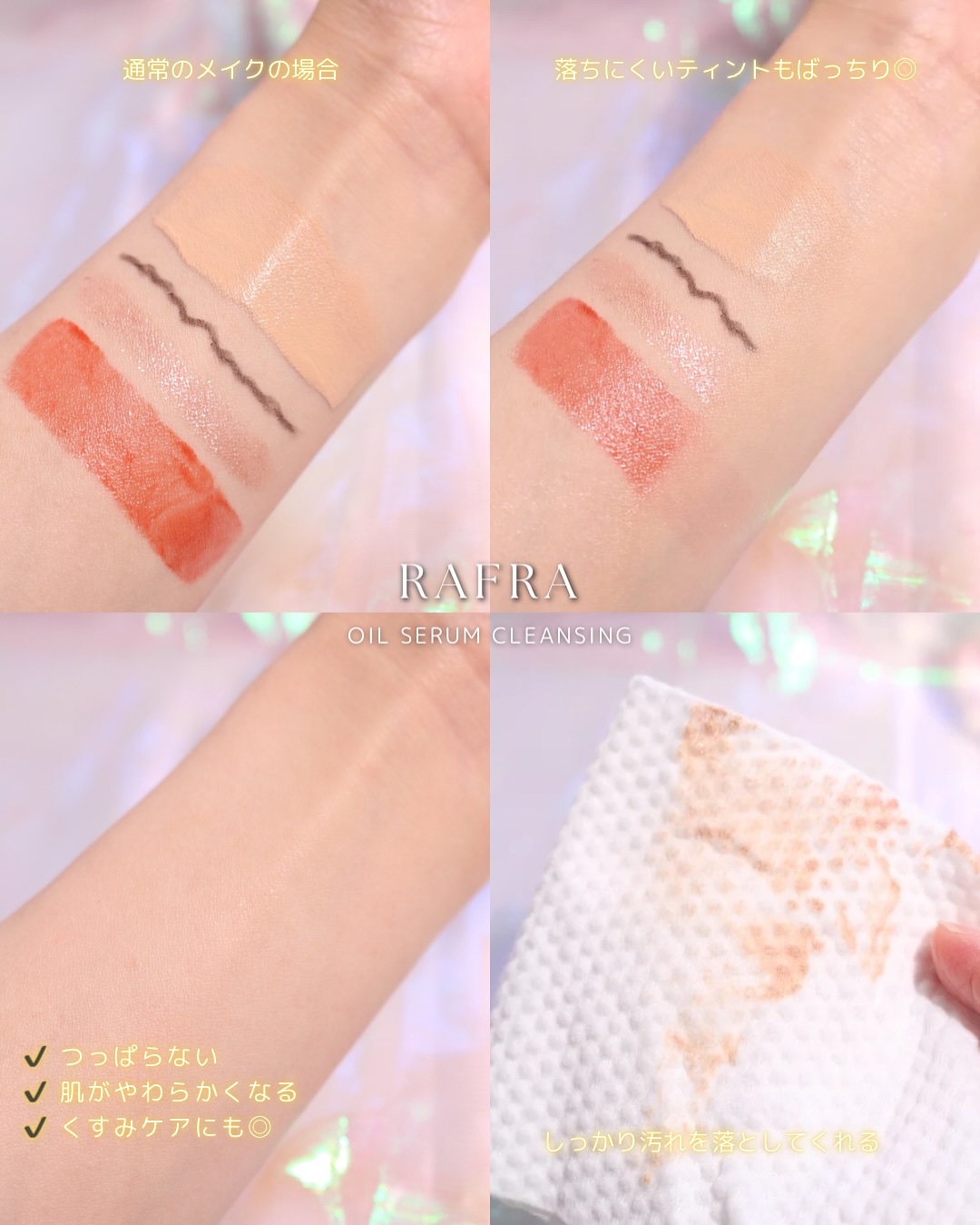 \時間がない夜も濡れた手OK!W洗顔不要!/ @rafra_official@cchannel_lemonsquareRAFRAオイルセラムクレンジング 肌のことを考えてバームを使っているけれど、蓋を開ける・スパチュラを使うのが面...