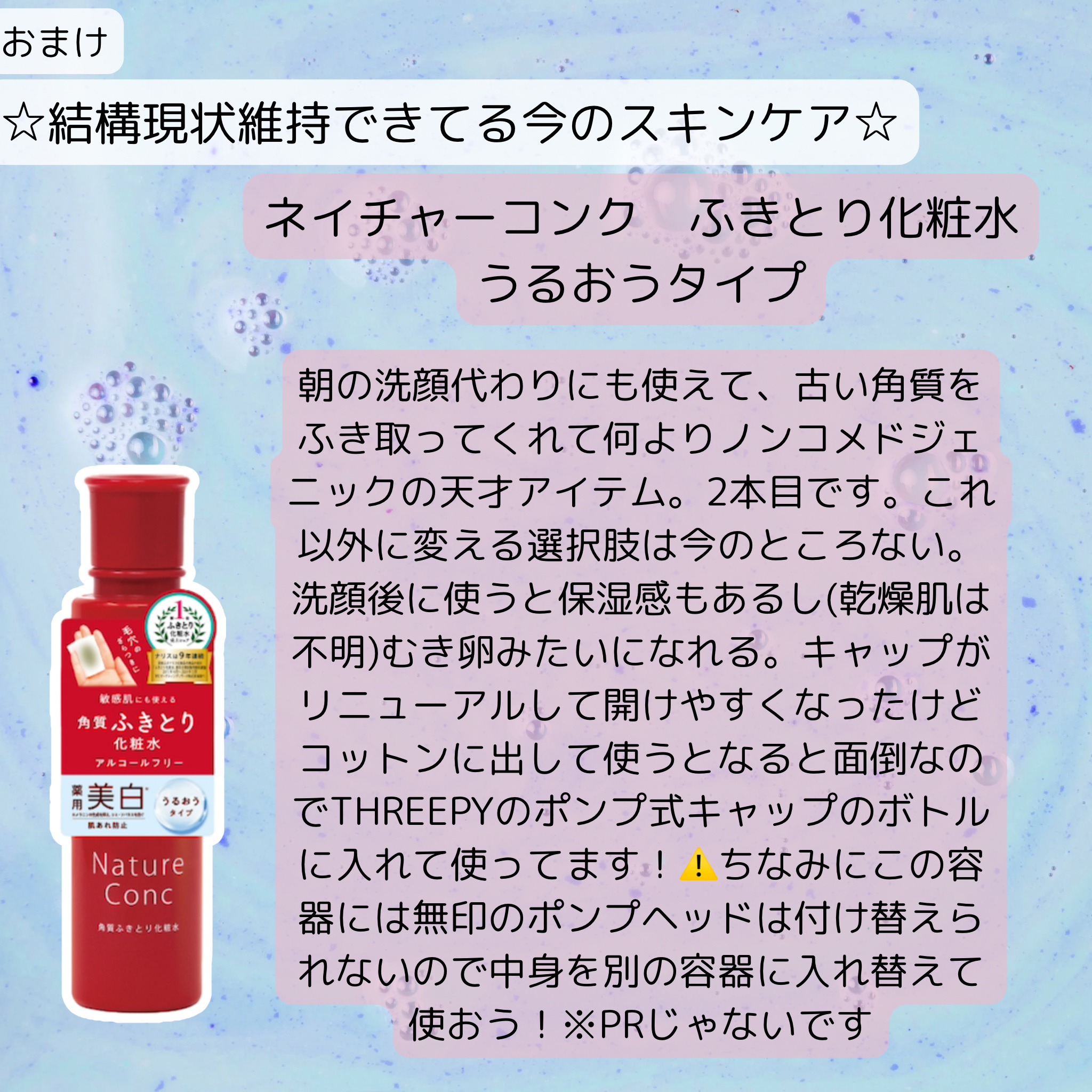 もっと見るおすすめアイテムネイチャーコンク×拭き取り化粧水