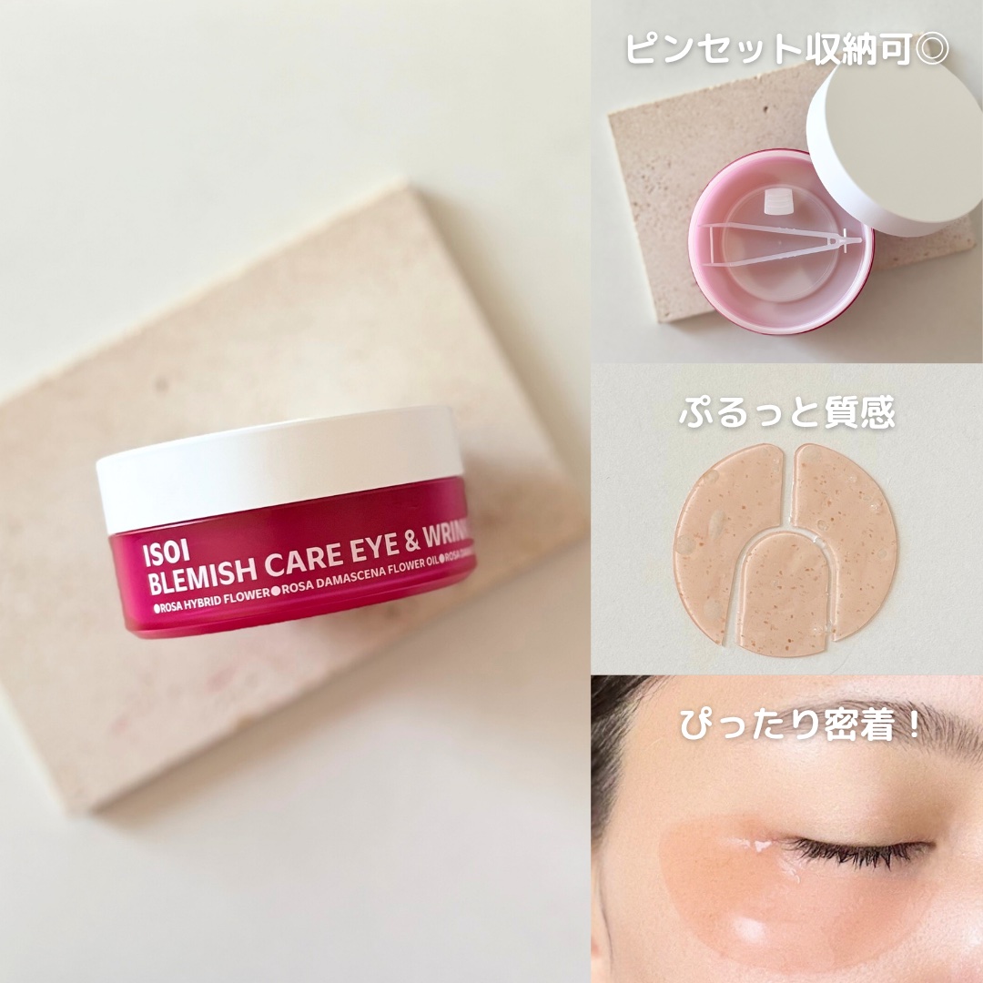 ISOI目元集中ケアアイゲルパッチ(90枚)大人気のローズセラム成分をたっぷり配合した美容液をそのまま固めたようなぷるっぷるのゲルタイプで肌にピタっと密着して目元・眉間を同時にケア🌹✨気になる部分に貼って1日たった3分OKなスペシャルケアだよ...