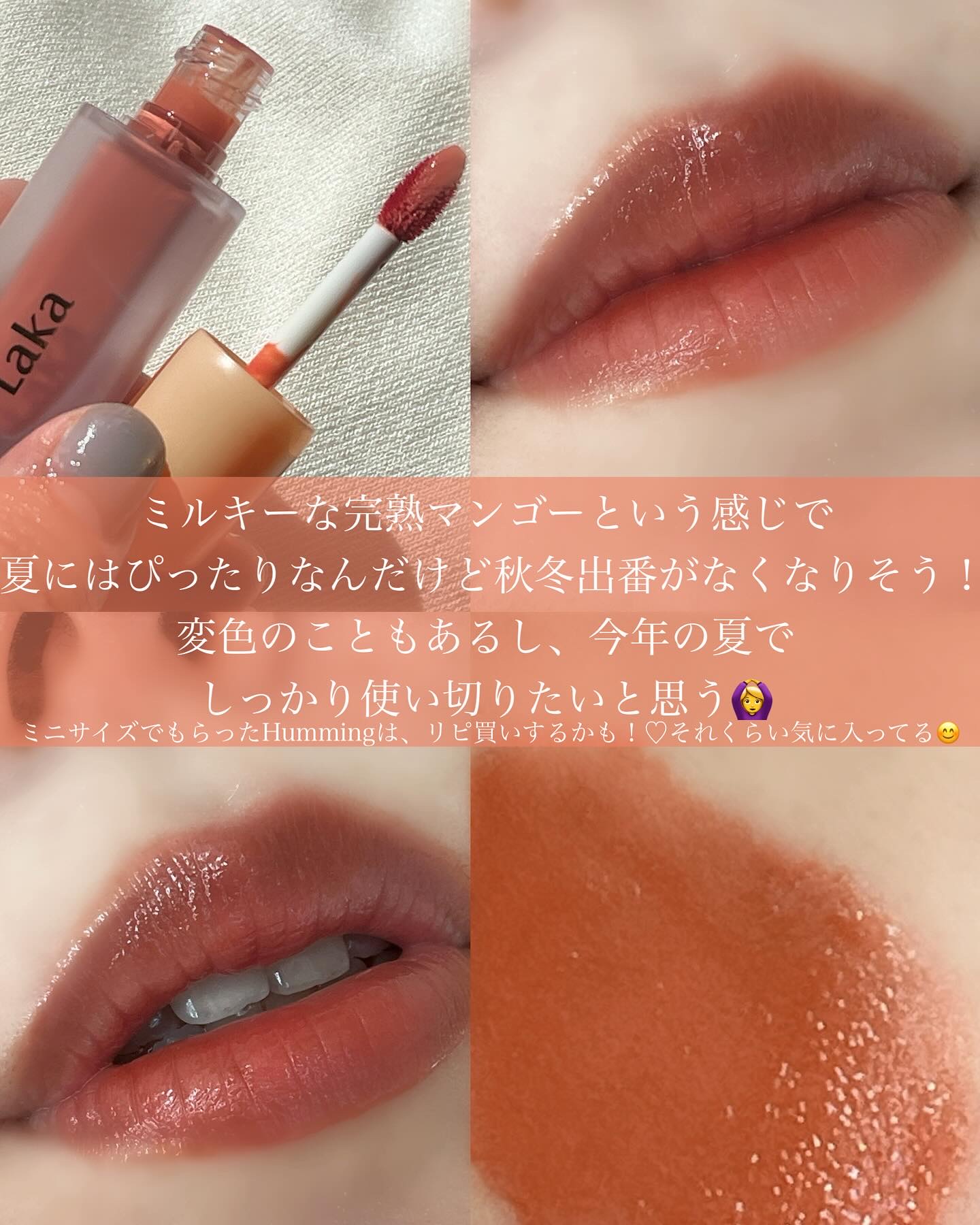 Lakafruityglamtint125mango🥭🧡つやつやちゅるんとしたテクスチャーで新鮮なマンゴーを詰め込んだようなやわらかく鮮やかなオレンジが可愛すぎる🧡ラカのティントは本当に落ちにくいのでおすすめ!つやつや可愛い唇に🧡カラバリ豊富...