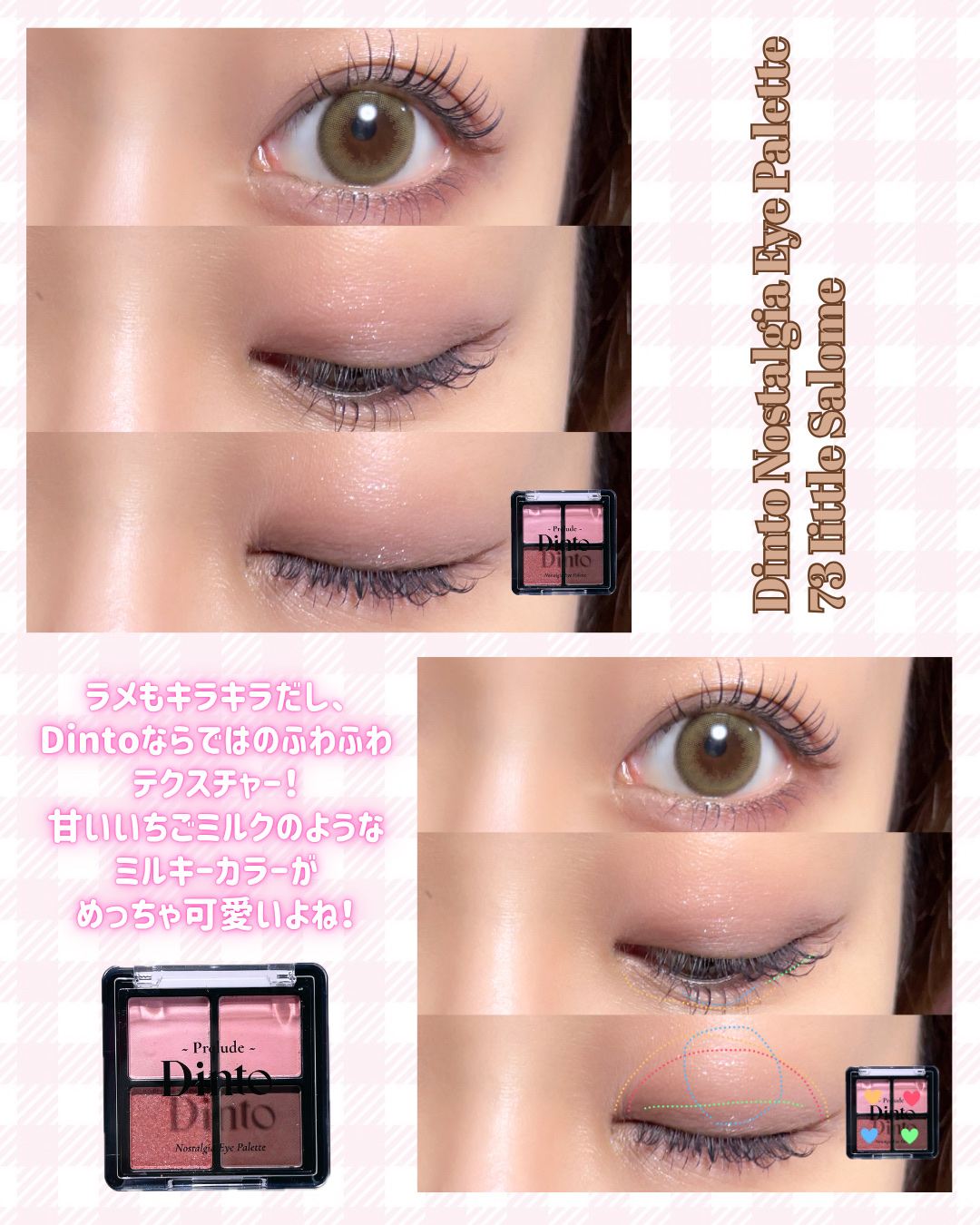 #PR投稿です🎀#Dinto#ノスタルジアアイシャドウパレット◉73LittleSalomeふんわりした粉質でラメもギラギラしすぎないからナチュラルに仕上がりそう🫧#ラ・ベル・ローズプランピングリップティント◉21EveningRose優しい...
