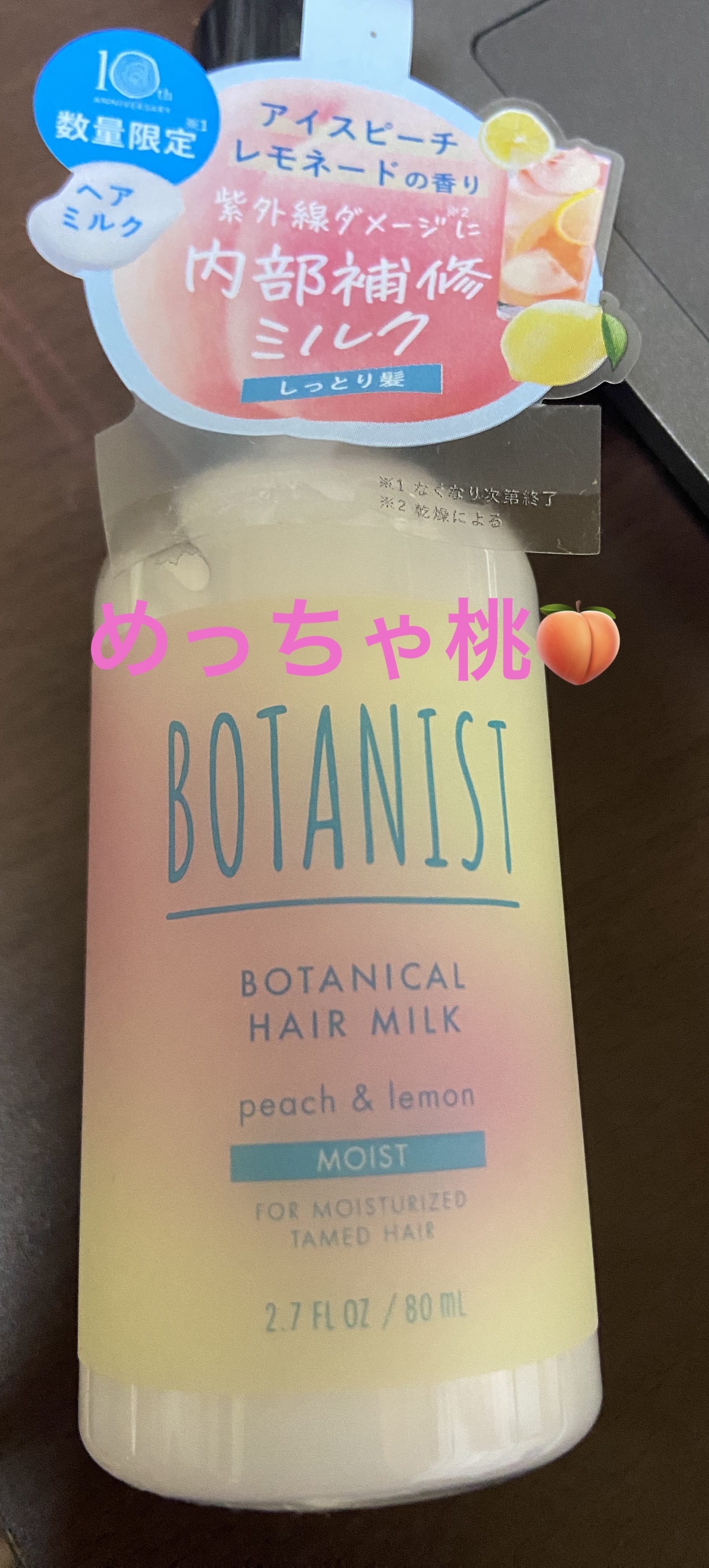୨୧୨୧BOTANISTボタニカルヘアミルクモイストみずみずしい爽やかな甘さのアイスピーチレモネードの香り🍑🍋1,870円(税込)洗い流さないヘアトリートメント乳液のようなみずみずしいテクスチャーで髪に馴染ませやすくてパサつきやすく広がりやす...
