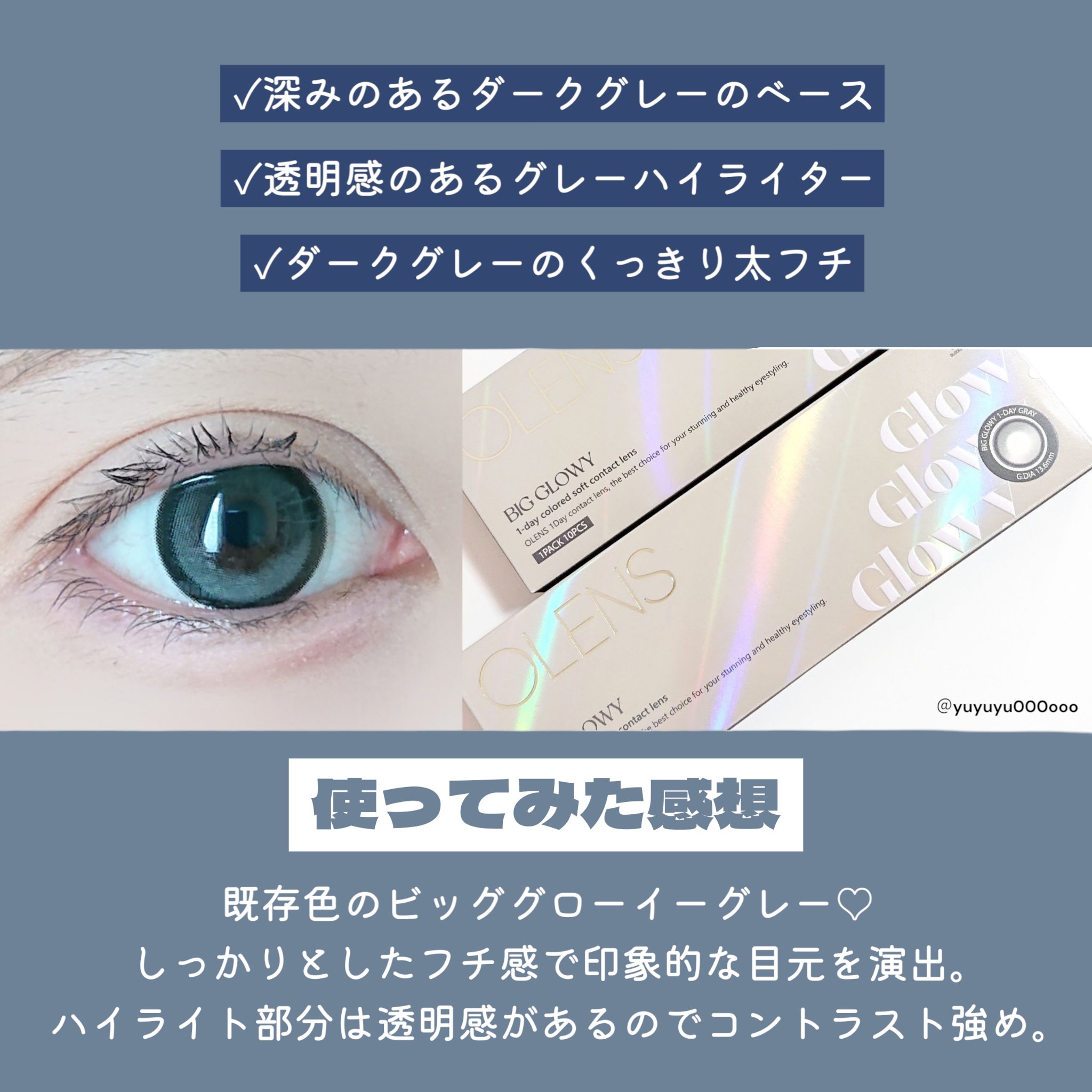- 韓国カラコン業界の話題のブランド『OLENS(オーレンズ)』の日本正式承認商品シリーズ。世界中から注目を浴びるグループ「NewJeans (ニュージーンズ)」がイメージモデル。 日本でも人気のシリーズ『BigGlowy』から、瞳に溶け込むように馴染む甘く上品なラベンダーカラーが登場。 立体感を加える繊細なハイライターデザインに、くりくりな眼差しを表現する、くっきりフチでラブリーで愛嬌のある目元に。 深みのあるラベンダーカラー+太フチで、ガラス玉のようなツヤを放つミステリアスな瞳に。甘さも存在感もどちらも叶える惹きつけカラーです。 ■使い方 コンタクトレンズは高度管理医療機器です。必ず眼科医の処方に従って購入してください。 ■使用上の留意事項 コンタクトレンズは高度管理医療機器です。眼科医の指導に従い装用期間を厳守し、正しくお使いください。眼の定期検査を必ず受けてください。添付文書を必ず読み、取扱方法、装用時間を守って正しくお使いください。少しでも異常を感じたら、直ちに眼科医の検査を受けてください。