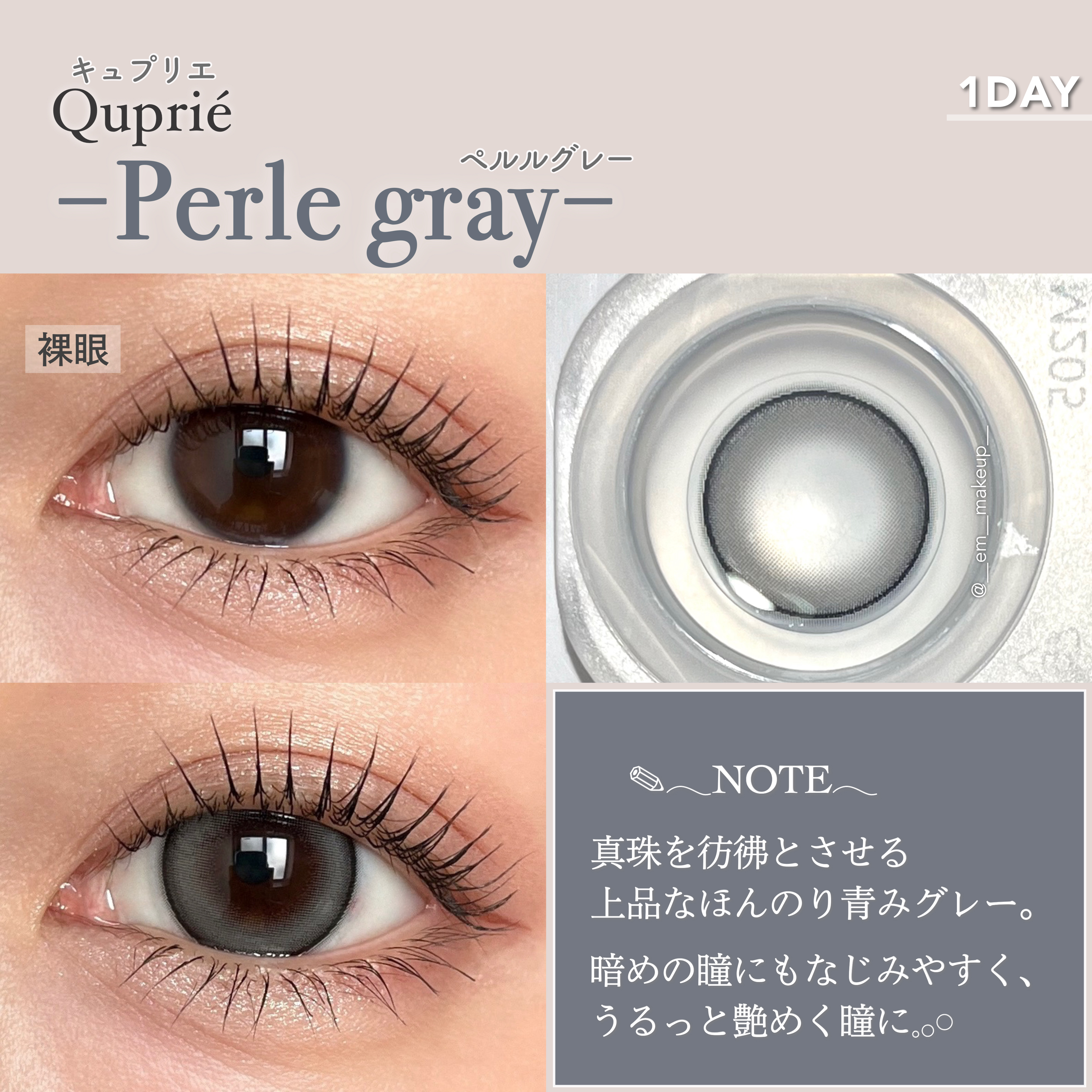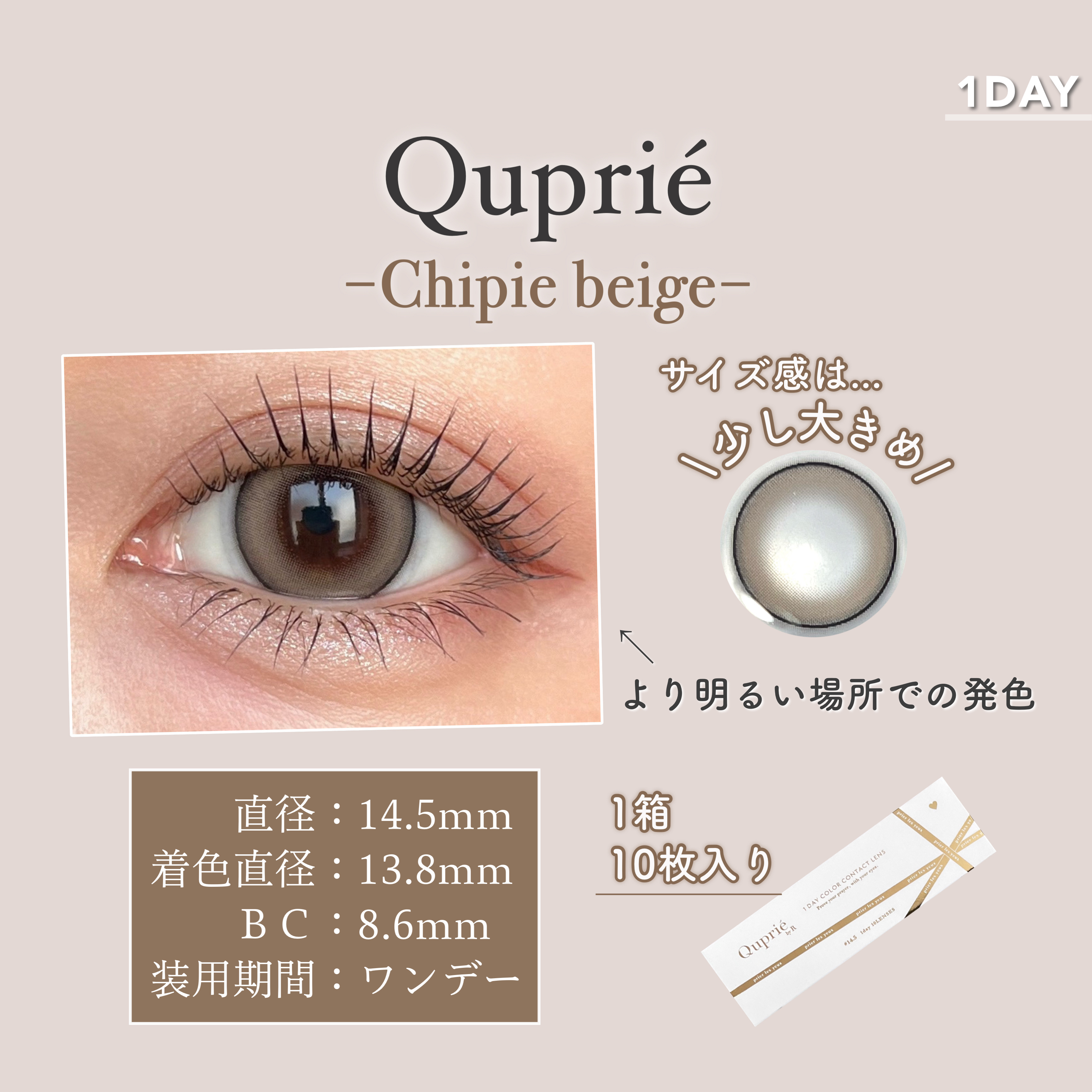 ...RちゃんプロデュースQupriébyR🐈⬛🎀じゅわっと馴染むツヤ発色と、美極細フチで、瞳をちゅるんと仕上げてくれる。真珠のような光沢発色美艶(ビツヤ)レンズ◾︎Chipiebeige-シピベージュ-ほのかに色めく我儘ベージュ上品なカラ...
