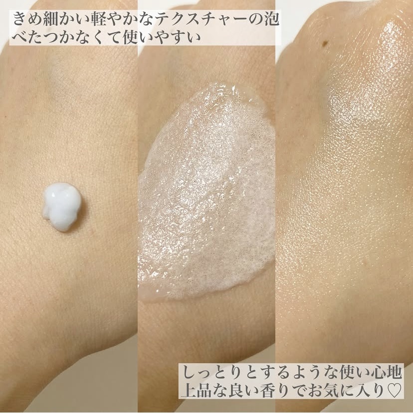 | なめらかなクリームのようなテクスチャーですが、 塗り広げて少しすると泡が立つ不思議な使用感! | 詳細を見る |