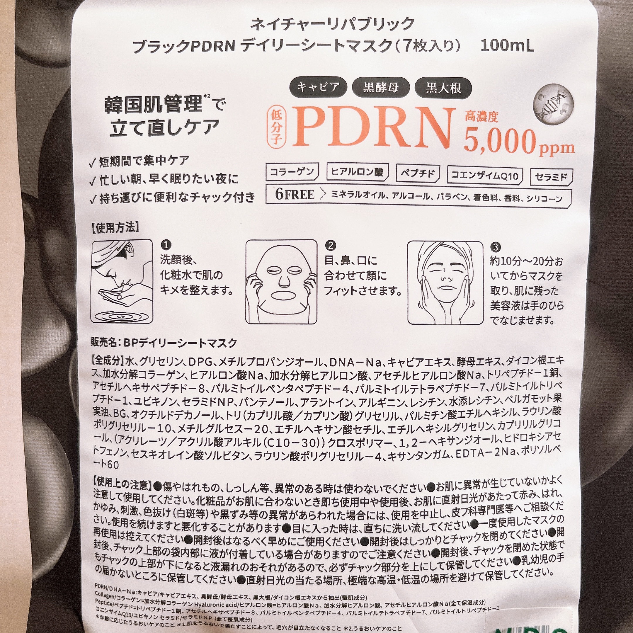 商品詳細情報ネイチャーリパブリック ブラックPDRN デイリーシートマスク