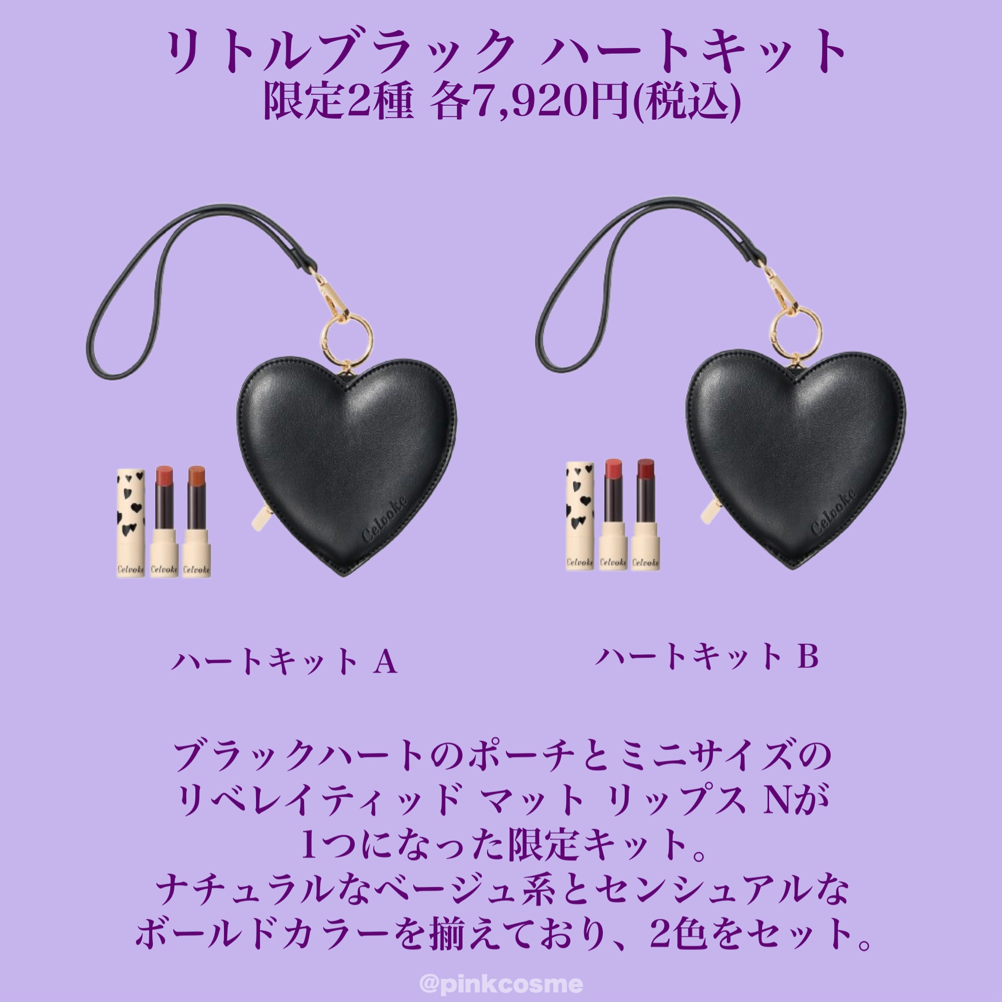 | コフレ・キットランキング第155位 | この黒ハートポーチがたまらない…!🔥 ミニサイズのマットリップ2色がセットになった限定キット。 | 詳細を見る |