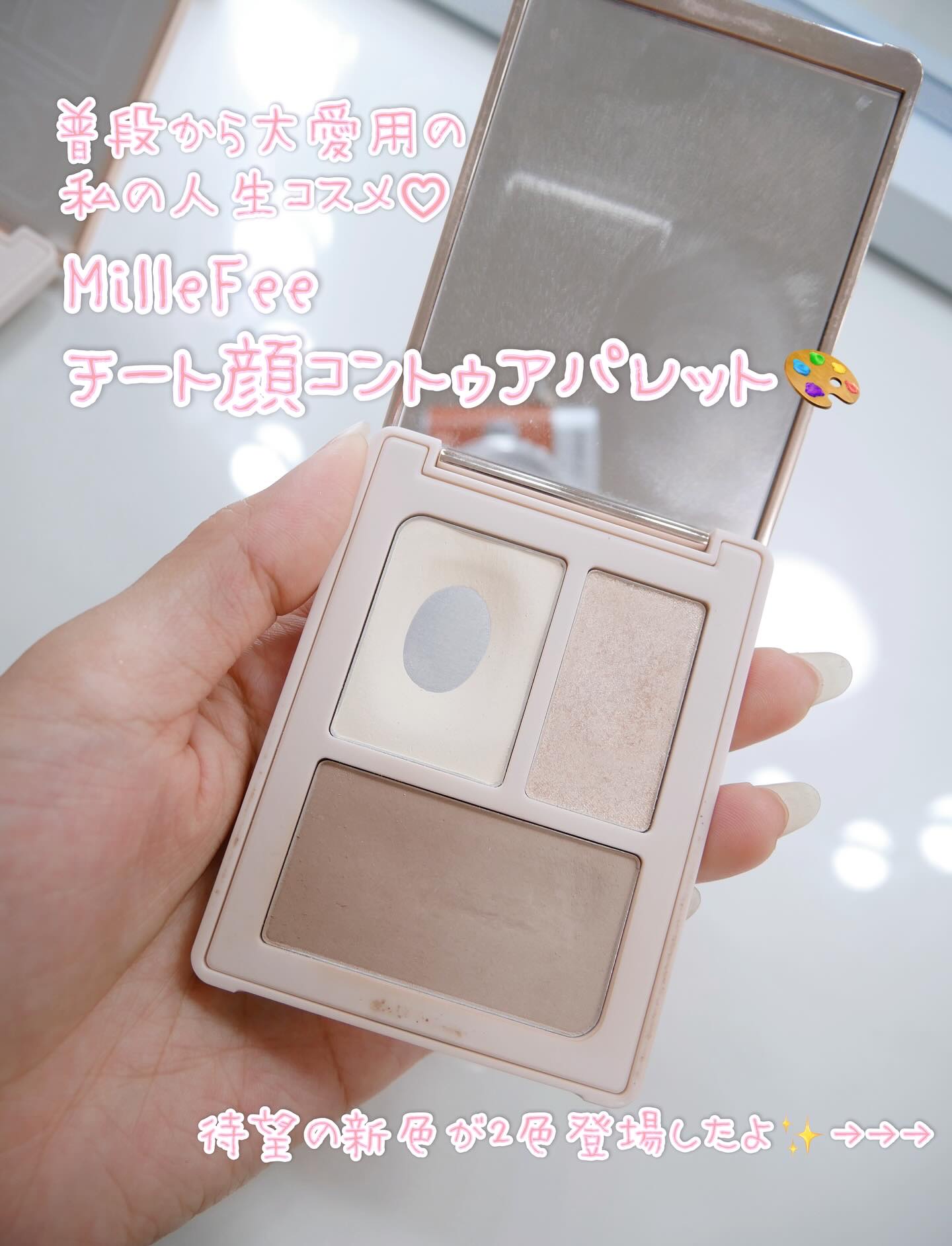MilleFéeの大人気チート顔コントゥアパレットに新色2色が仲間入り!MilleFéeチート顔コントゥアパレット03ふっくらピンク04しのばせベージュ2種類のハイライトとグラデーションシェーディングで自然な立体感と中顔面短縮を叶えます。マッ...
