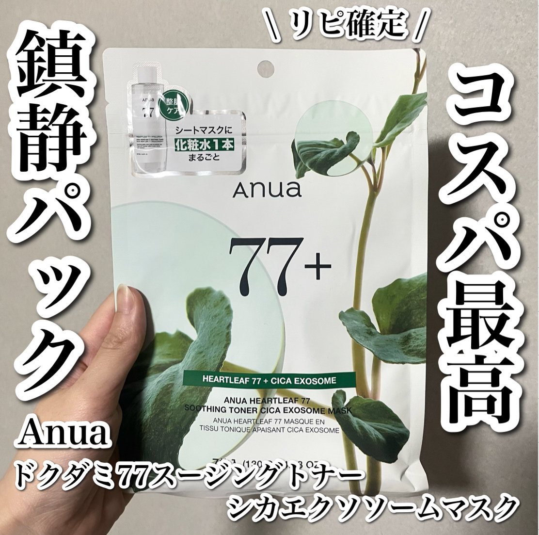 🌿毎日1枚話題のフェイスマスク、みどり色のマスク!?🌿Anuaドクダミ77スージングトナーシカエクソソームマスク1,290円(税込)7枚入り最近人気のアヌアのマスクパックで悩みに合わせて毎日1枚1週間の集中ケア🌿肌に安らぎを与えながら水分チャ...