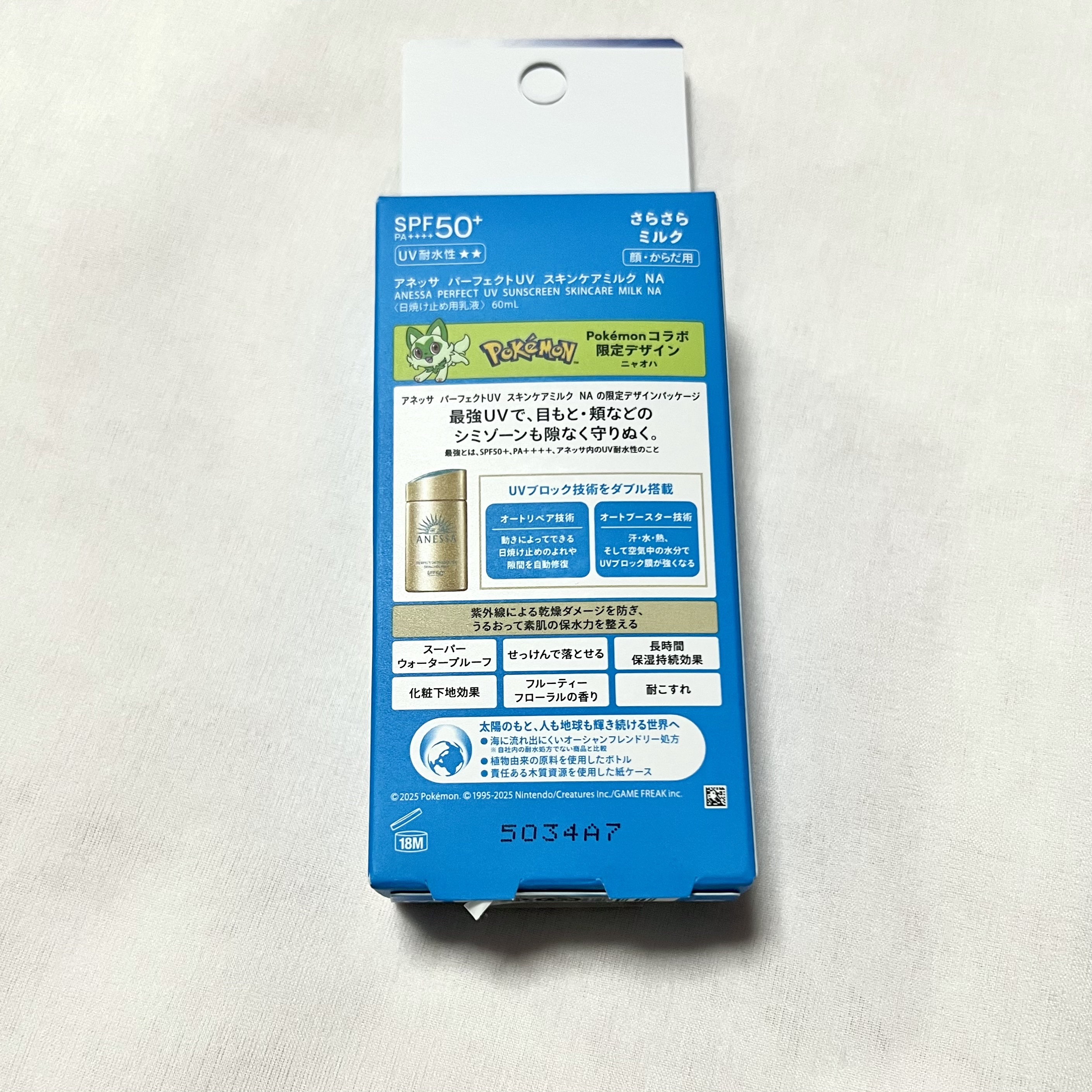 アネッサ パーフェクトUV スキンケアミルク NA限定のポケモンコラボ✨ニャオハのデザインがかわいい🩷ドラッグストアで¥3,058にて購入海やフェス、野外活動にはこれと決めています!汗や水に強く落ちにくいですクレンジングでしっかり落とし切るよ...