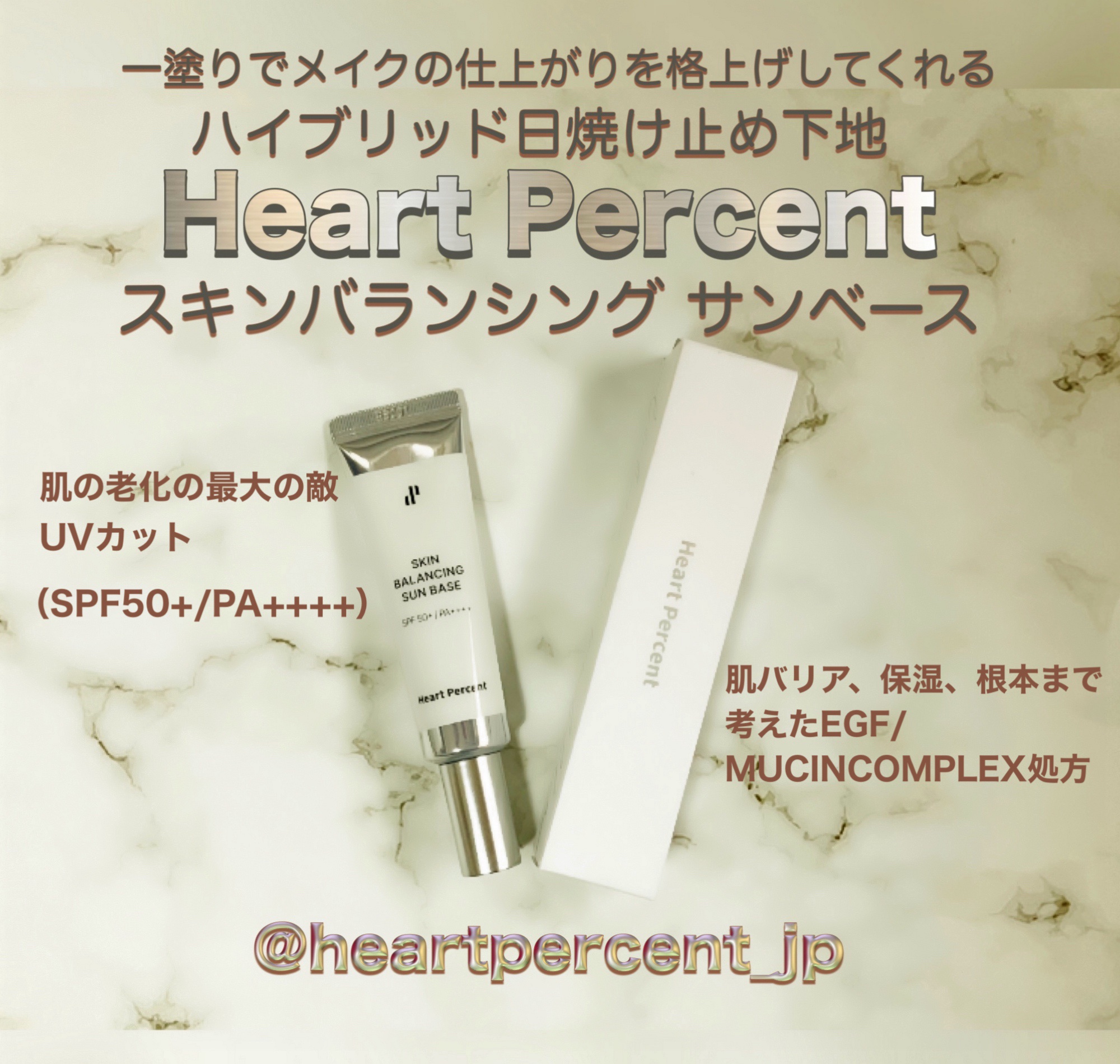 HeartPercentスキンバランシングサンベースSPF50+PA++++紫外線対策だけでなくメイクノリup・水油分のバランスを整えてくれる!刺激の少ない有機栽培成分のみ使用で光老化・メラニンケアを同時に叶える🥹UVA→シワ・弾力低下・色素...