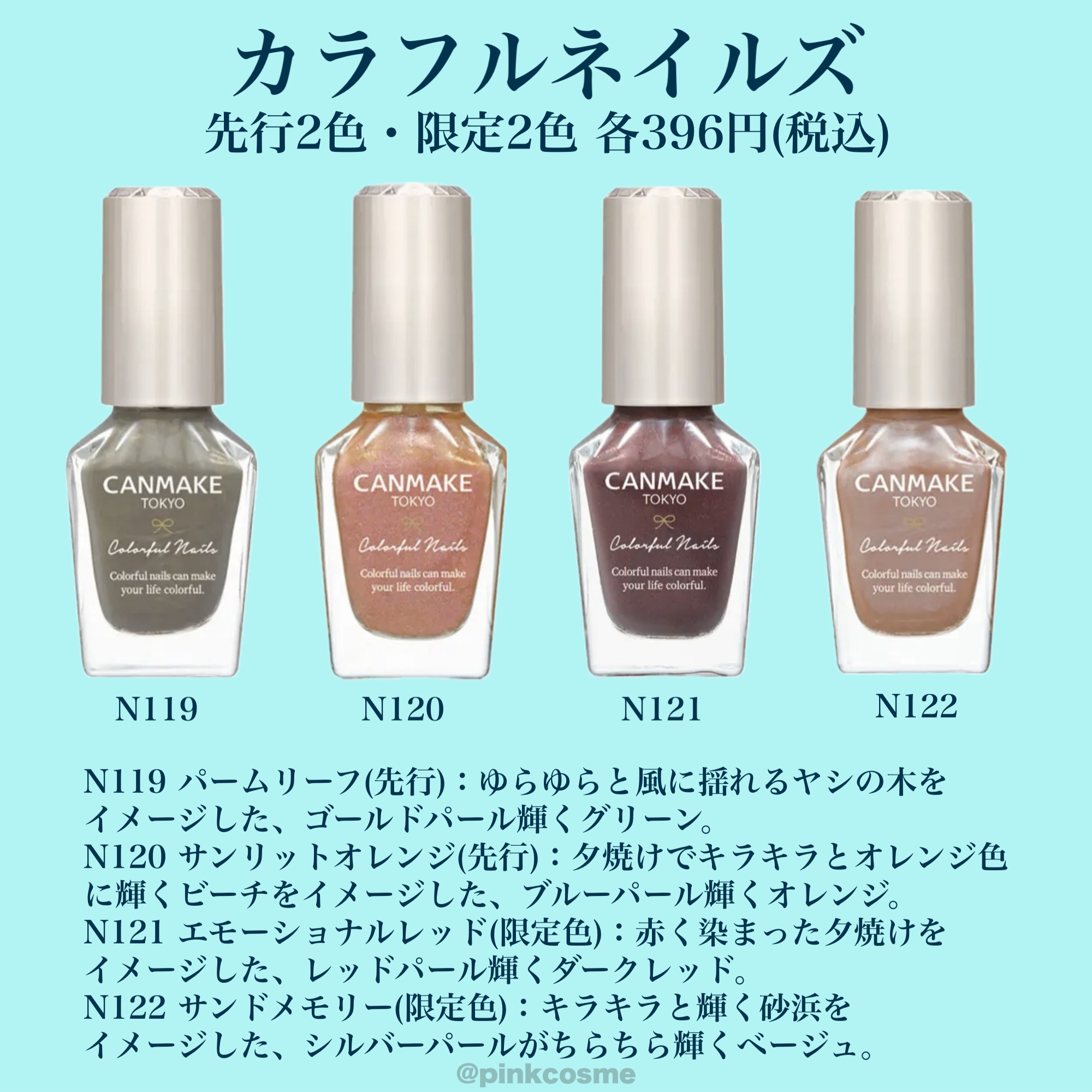 7/31販売開始!テーマ∶「夕日に照らされたビーチ」✼••┈┈••✼••┈┈••✼••┈┈••✼••┈┈••✼カラフルネイルズN119パームリーフN120サンリットオレンジN121エモーショナルレッドN122サンドメモリー✼••┈┈••✼••...