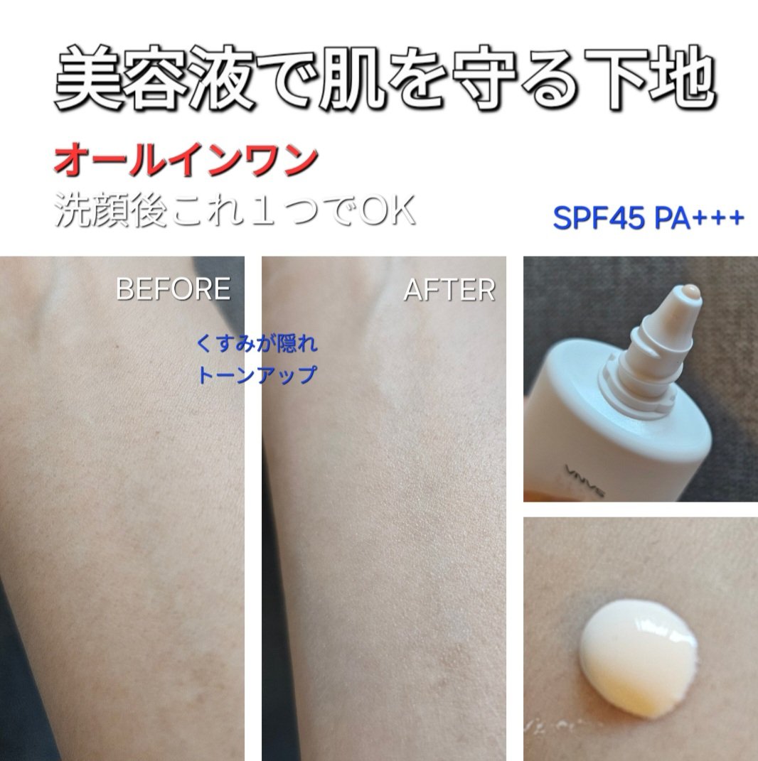 - 美容液で肌をまもる下地 豆乳スキンケア市場*1第1位 色ムラ・くすみ補正*2 乾燥・テカリくずれ防止 保湿ケア □ノンケミカル*3 □低刺激 石けんオフ 豆乳の保湿美容液下地 美容液生まれのUV下地で日中もお肌を守りながらうるおい満ちたお肌へ。 ○キメを整えてお肌を守るオリジナル成分 高純度豆乳イソフラボン ふくゆたか使用豆乳発酵液(すべて保湿成分) ○乾燥からバリア 3種の*4セラミド グリチルリチン酸2K*5 エクトイン*5 ビタミンE*6 長時間べたつかず、乾燥・皮脂くずれをW防止 8時間化粧持ちデータ取得済み*7 高密着パウダー*8 皮脂吸着パウダー*9 うるおい持続成分*10 美容液成分*11 87% オールインワン 洗顔後これ1つでOK! SPF45 PA+++ ブルーライトカット成分*12in *1 豆乳成分配合のセルフスキンケア市場 店頭売上金額2023年小売店5社POSデータ *2 メイク効果による *3 紫外線吸収剤不使用 *4 セラミドNG、セラミドNP、セラミドAP(すべて保湿) *5 保湿 *6 トコフェロール(製品の抗酸化成分) *7 当社調べ 仕上がりには個人差があります。(ツヤ・透明感・毛穴目立ちのなさ・薄れのなさ) *8 オキシ塩化ビスマス *9 シリカ *10 (エイコサン二酸/テトラデカン二酸)ポリグリセリル-10(保湿) *11 保湿成分(油性・水性)、水 *12 酸化チタン ●パッチテスト済み ●アレルギーテスト済み ●ノンコメドジェニックテスト済み (すべての方に皮フ刺激やアレルギーが起きない、また、ニキビのもとができないわけではありません。)