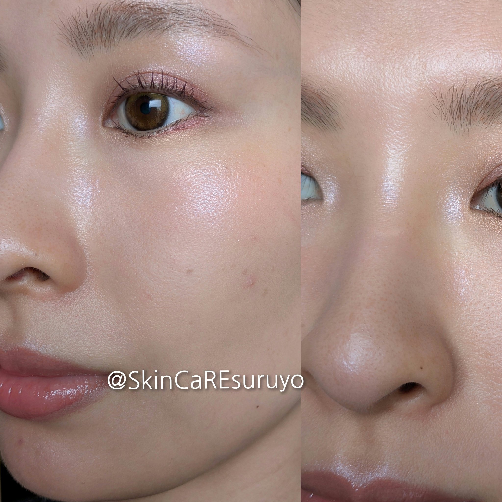 大きめのブラシで全顔にふわっと載せても良いし 毛穴が気になる部分にピンポイントで載せても良いし くすみが気になる部分に載せても良いし ハイライトとしても使用できる❣️ それくらい万能なお粉🥰 画像を見てもらえば一目瞭然で優秀さが伝わる仕上がり! テカリは抑えつつ肌をふわっと明るく綺麗に見せてくれる🤭