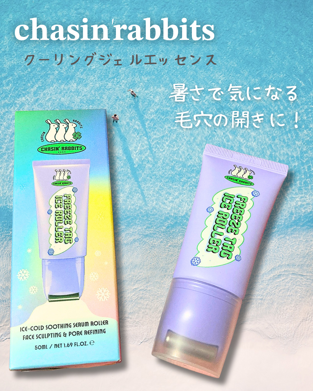 CHASIN'RABBITSフリーズタグアイスローラー🧊火照った肌や赤みが気になる肌におすすめ!毛穴の引き締めにもグリーンルイボスエキス6種ヒアルロン酸ハルンガナマダガスカリエンシスエキスメンタアルベンシスエキス付属のカッサローラーが手よりか...