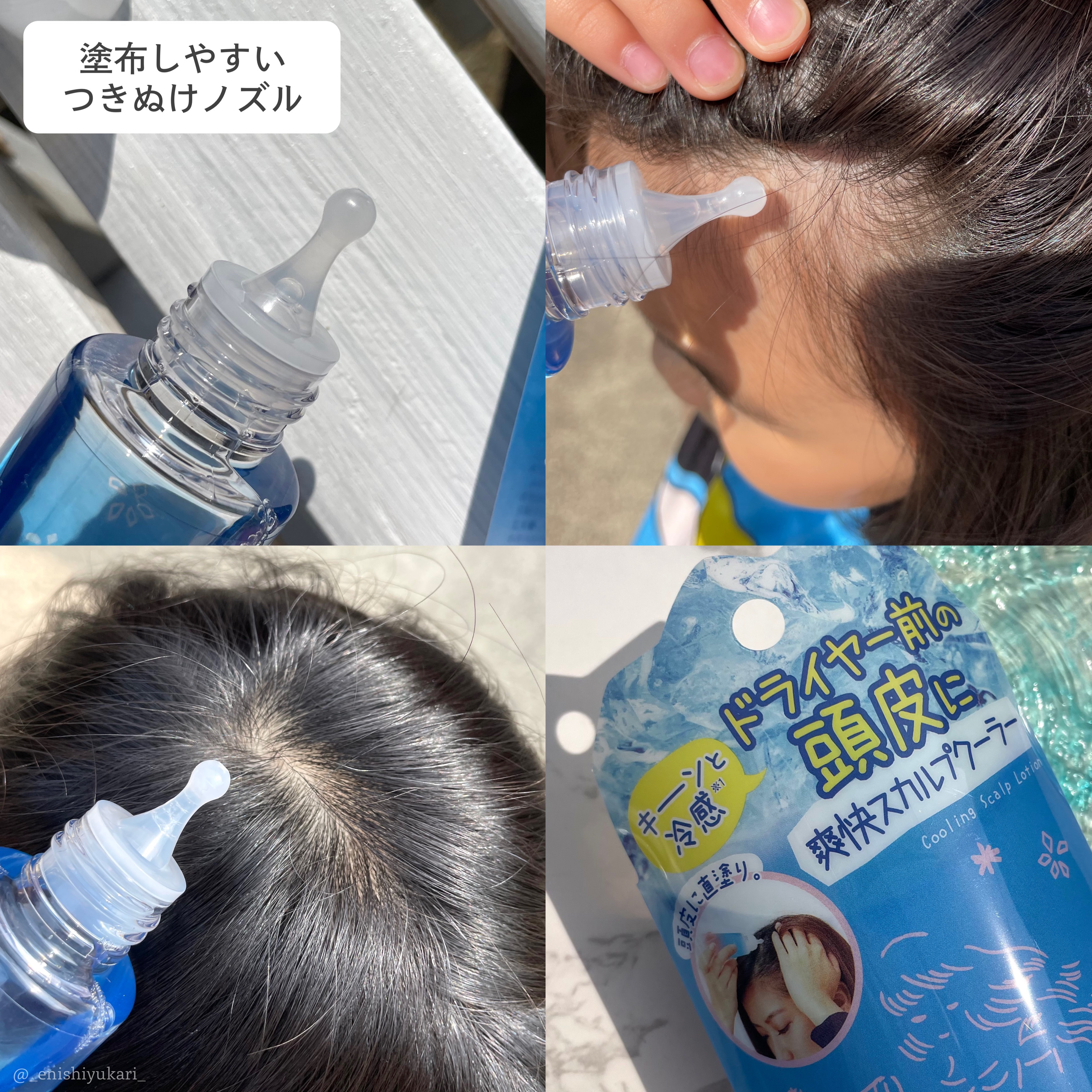 - 頭皮に直塗り、暑すぎるヘアドライ卒業!零氷感*ローションが頭皮にひんやりクール感を与え、快適なヘアドライタイムに。 *清涼感のイメージ