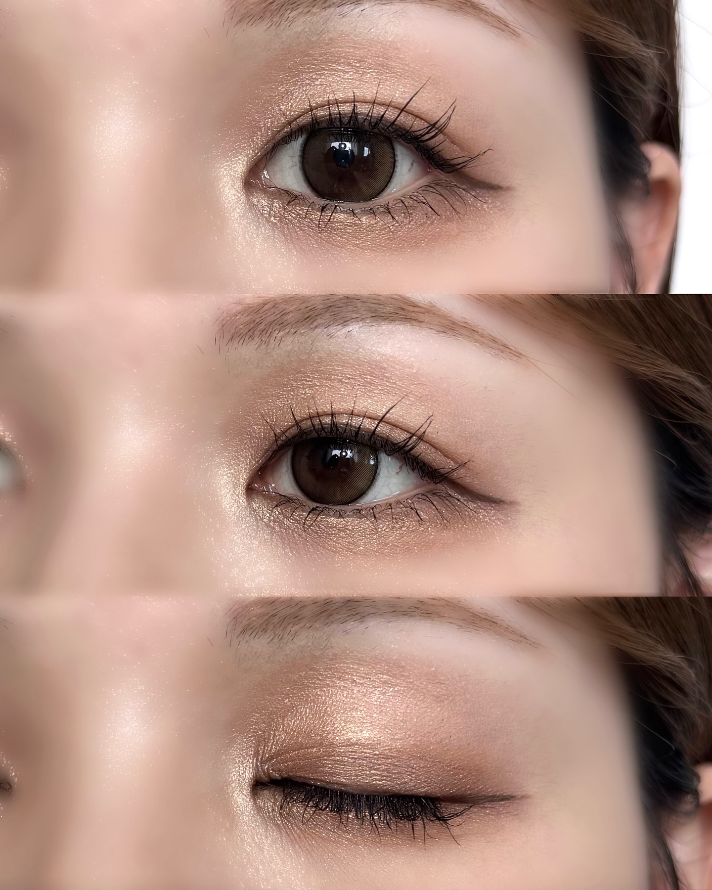 右上のピンクラメをベースに仕込んでメイクしたんだけどツヤと煌めき感えぐすぎる😳💎可愛い、、 そこに右下のカラーを重ねるとじんわり血色感が滲み出るような目元になるよ🦩 これは欠品店舗続出しそう🫣