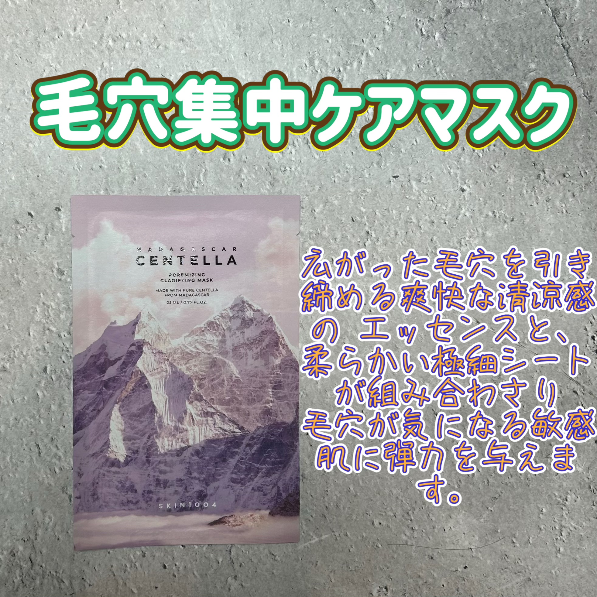 SKIN1004ポアマイジングクラリファイングマスクヒマラヤピンクソルト・コハク酸配合で毛穴にアプローチするマスク💞少し厚めの伸縮性のある生地で切り込みが入っているよ!美容液はヒタヒタだけど15分くらいすると顎の周りが剥がれてきた🤔マスクの後...