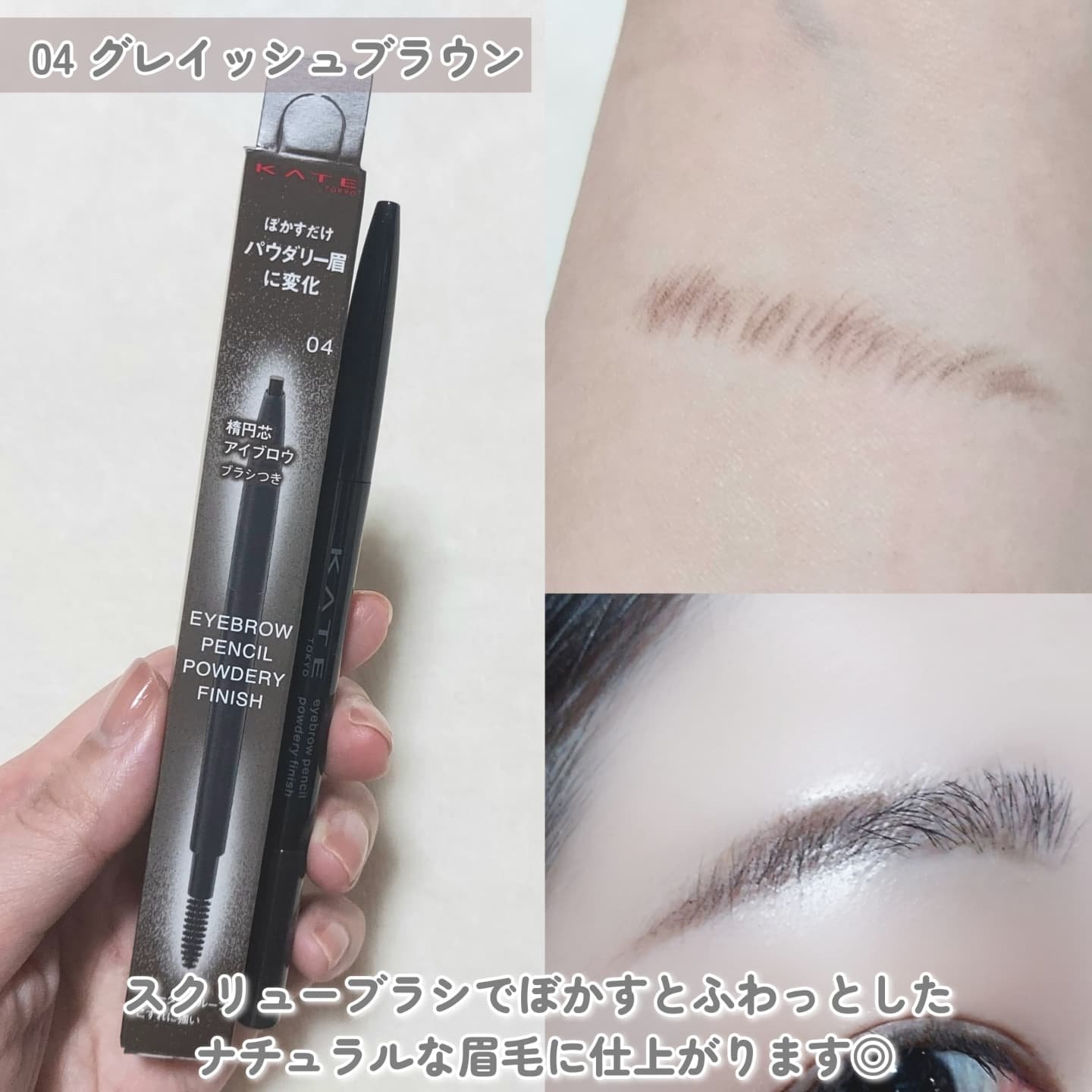 ブラシでぼかして、パウダリー眉に変化。 商品名:ケイトアイブロウペンシル(パウダリーフィニッシュ) ペンシルなのにパウダーで仕上げたようなふんわり感。 ブラシでぼかすとさらに柔らかな印象になります🫶🏻 こすれに強く、ウォータープルーフタイプでふんわり眉が長時間持続してくれるそうです。