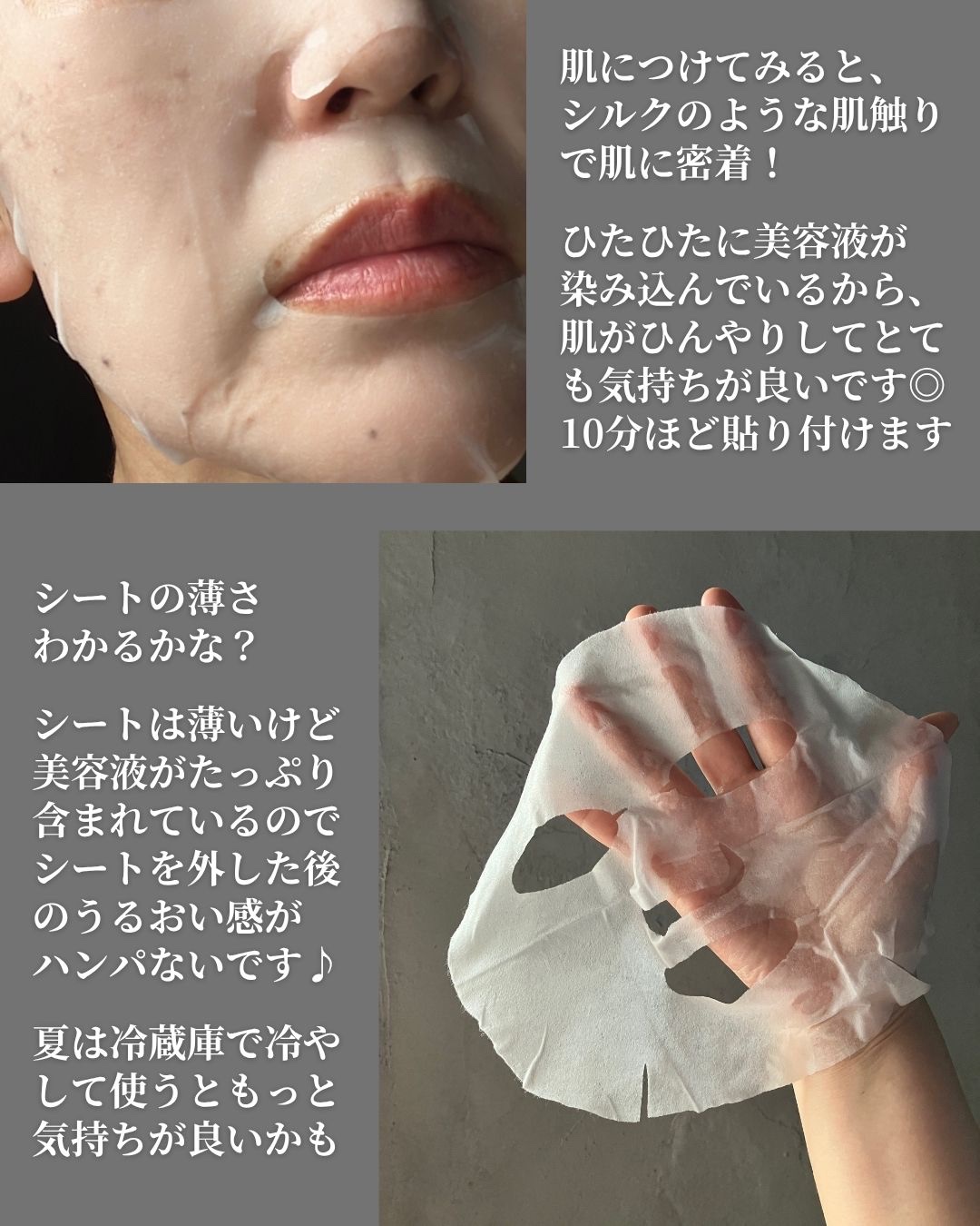 | スキンケアランキング第60位 | 袋を開けた瞬間から美容液がたっぷりで贅沢感 シートは薄めなのに破れにくく、顔全体にピタッと密着。液だれしにくいのでながらケアにも◎ | 詳細を見る | |