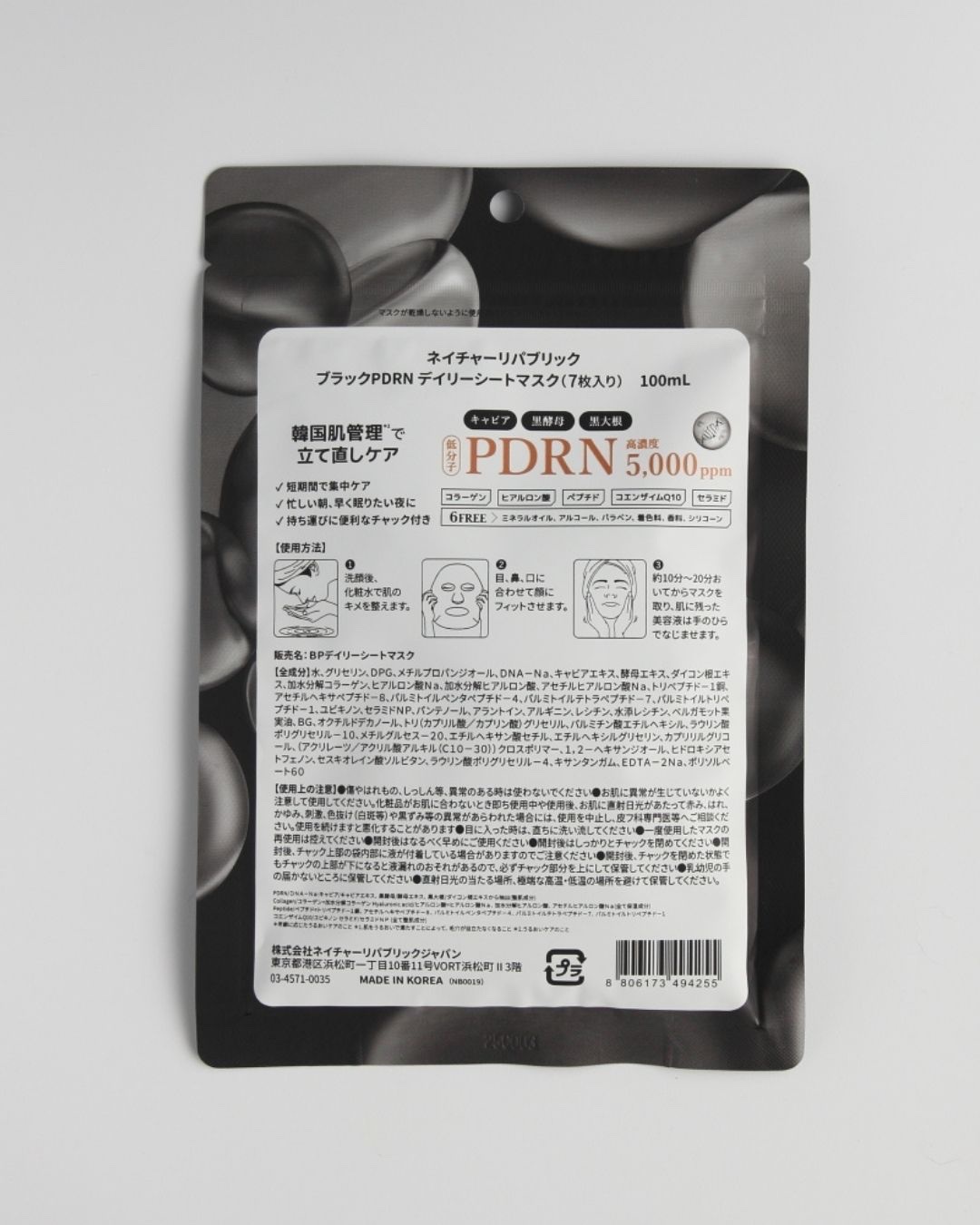 商品詳細情報ネイチャーリパブリック ブラックPDRN デイリーシートマスク