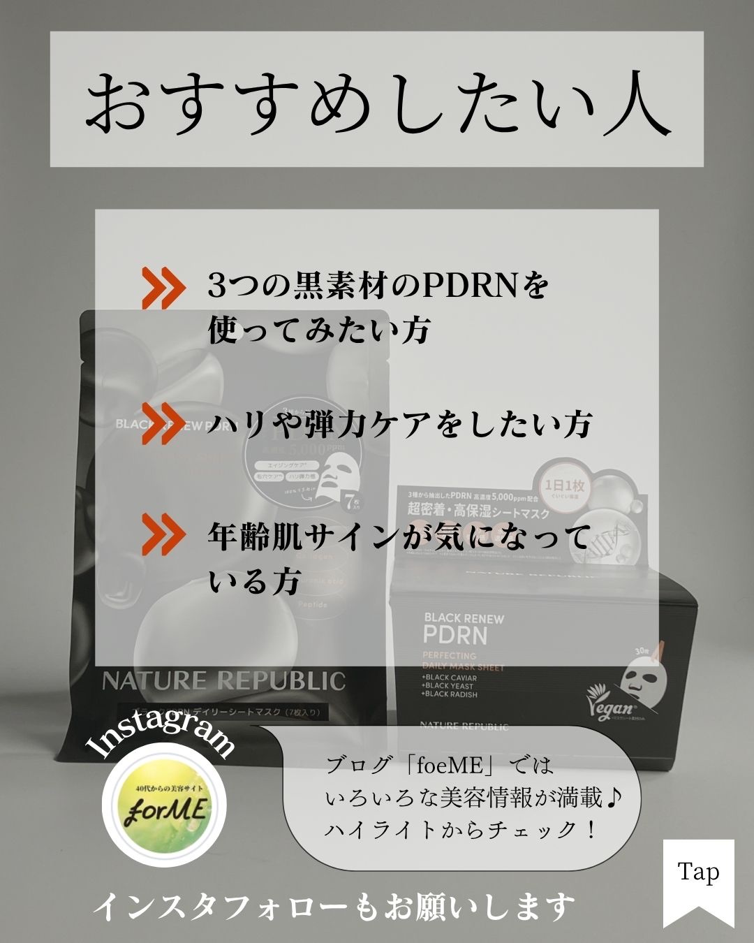 ネイチャーリパブリックブラックPDRNデイリーシートマスク30枚入りNATUREREPUBLICさんのシートマスクをお試しさせていただきました🌿3種のBLACKから抽出したPDRN※👐🏻🖤肌再生をサポートしてくれる『キャビア』🩶ハリ弾力感UP...