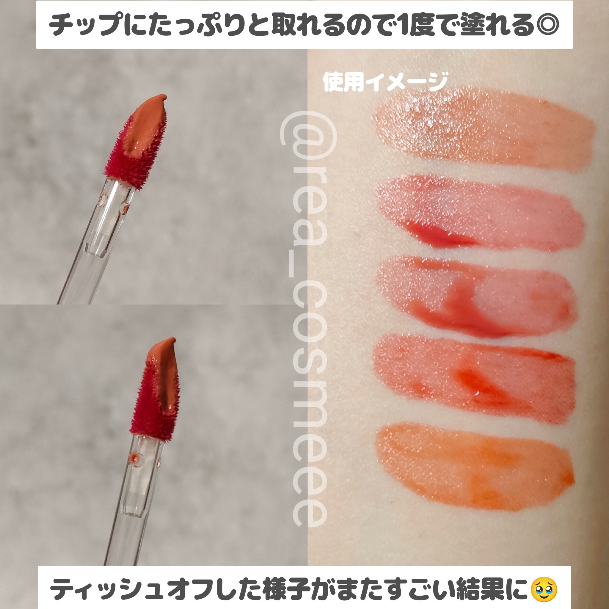 | リップティントランキング第3位 | 重ねて塗っても、ちゅるんと透け感が残って明るめカラーがとっても映える…💕色残りも◎ | 詳細を見る | ||