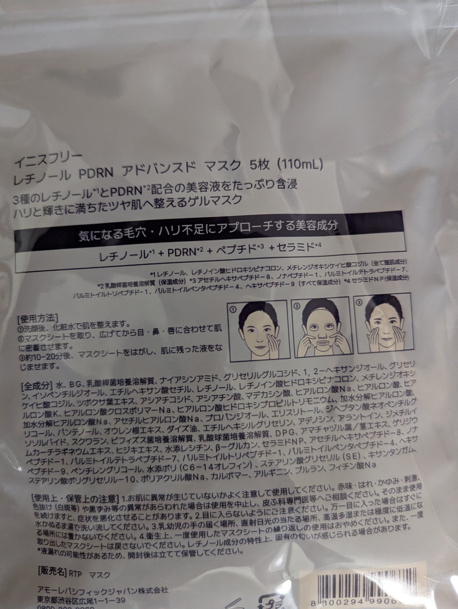 商品詳細情報innisfree レチノール PDRN アドバンスド マスク