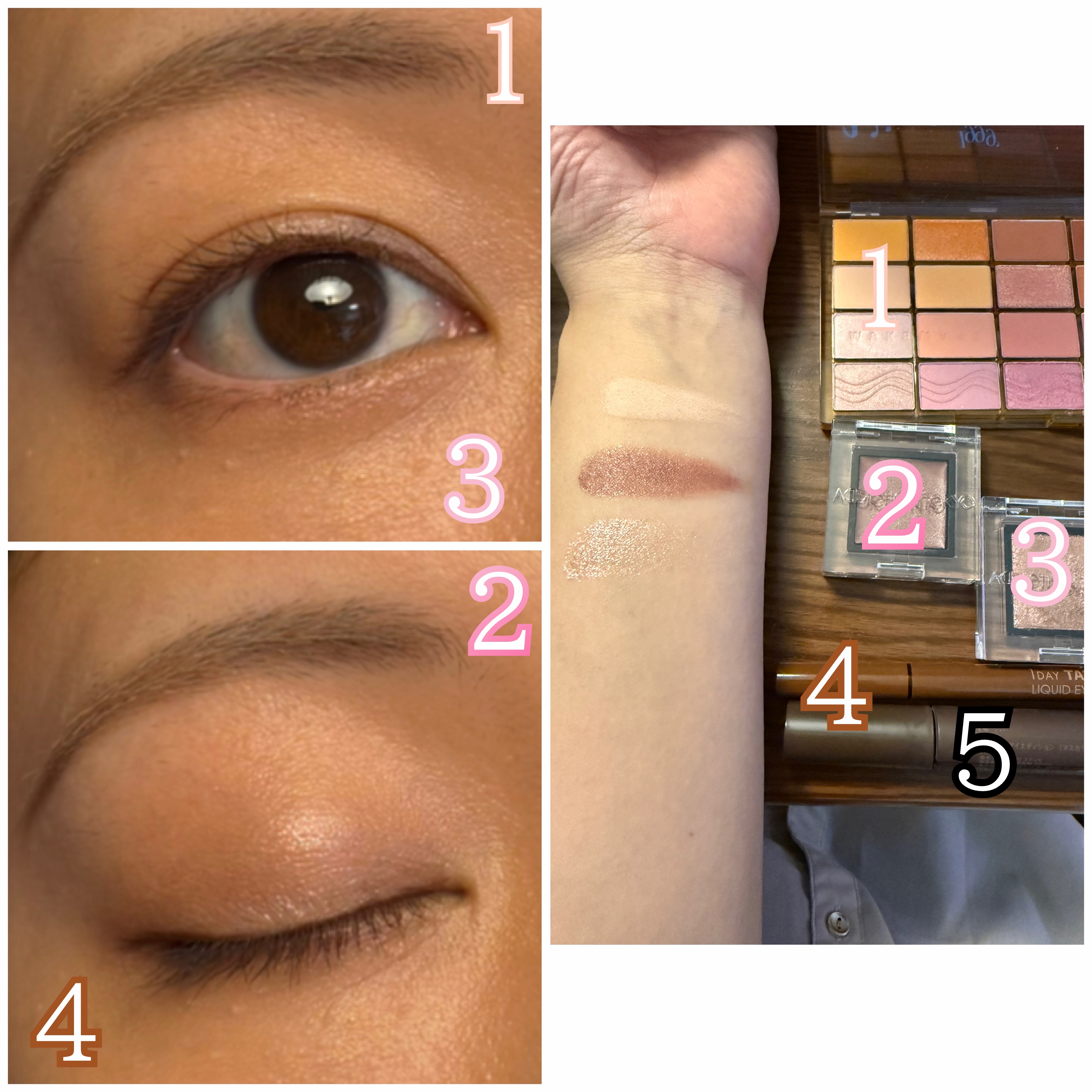 注意⚠️目元画像ありADDICTIONアディクションザアイシャドウパレット+001VintageTutu左上は白っぽいが若干ピンクを帯びているようで可愛い。まさにシャンパンローズ。ラメは多色ラメでピンクラメも見える。がっつり塗るとまばゆいほど...