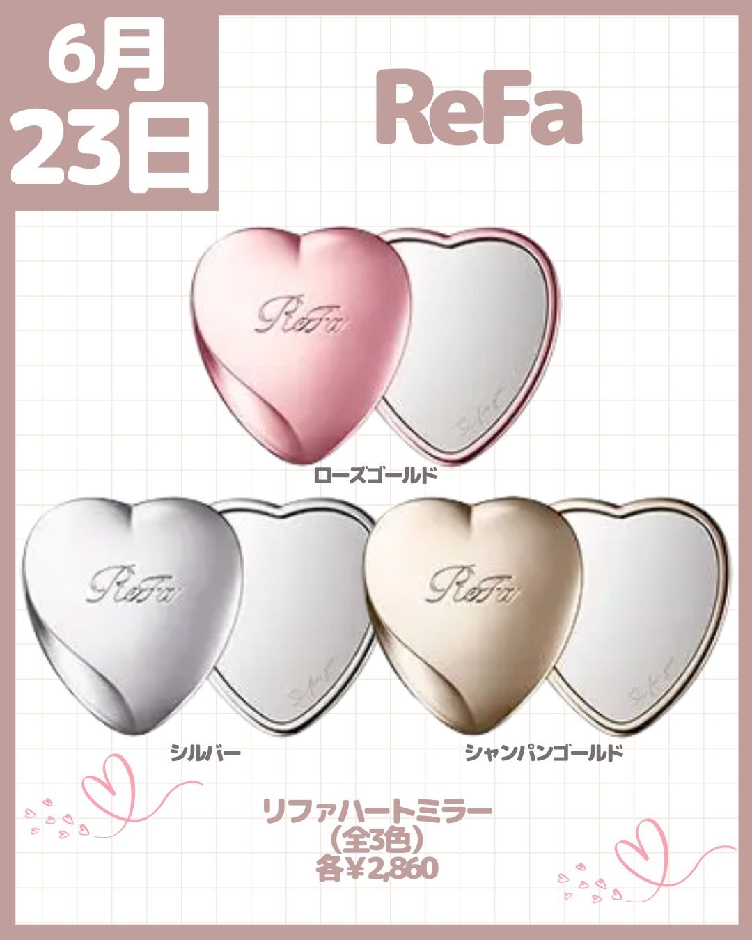 リファハートコーム アイラ(新3色)各¥2,970 ・シャインレッド ・アクアブルー ・エメラルド リファ ハートブラシ(限定1色)¥3,300 ・シルバースカイ(MTG Amazon公式ストア限定) リファミルクプロテインシャンプー ピンク 500mL ¥1,980 →リファミルクプロテイントリートメント ピンク 500g ¥1,980