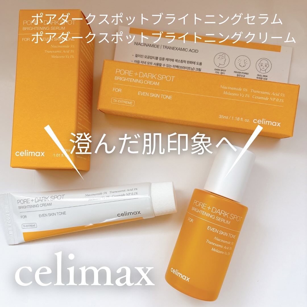 celimaxの人気スキンアイテムを紹介💛@celimax.japan✴️シミケア4種セット ☑︎ポアダークスポットブライトニングセラム トラネキサム酸美容液✨ 肌の色ムラだけでなくて毛穴まで 明るく導きます♡ みずみずしいテクスチャ...