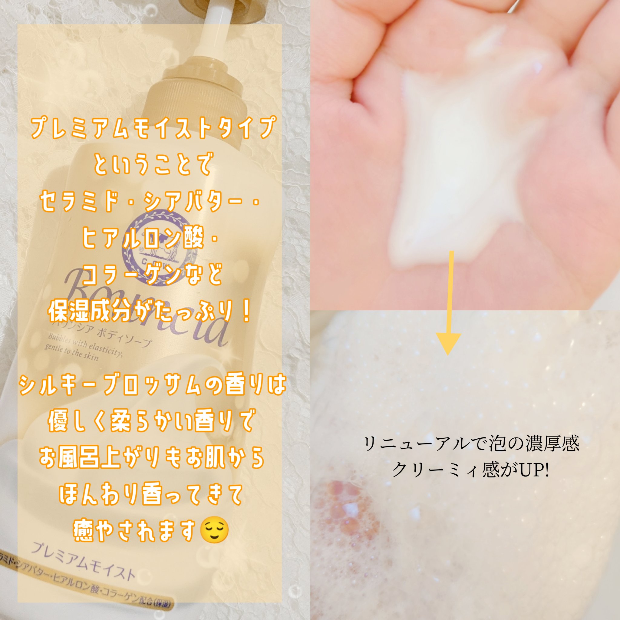 牛乳石鹸さまからいただきました🌟泡と香りでくつろぐご自愛時間に🤍バウンシアボディソーププレミアムモイスト上質なシルキーブロッサムの香り✧◎牛乳石鹸史上最高*¹の濃厚クリーム泡◎美肌成分シアバター、ヒアルロン酸、コラーゲン(保湿)配合!◎セラミ...