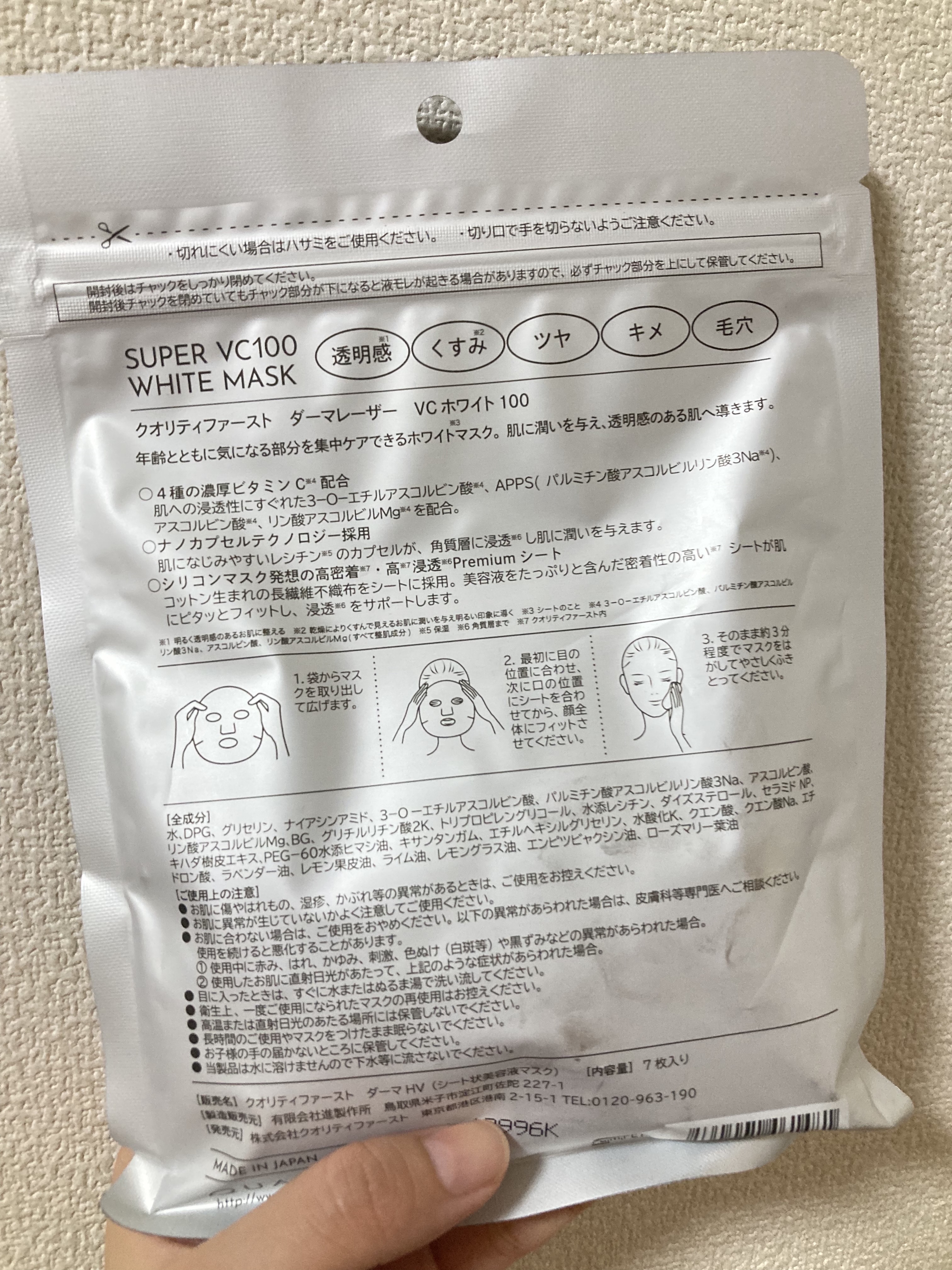 ✨クオリティファーストダーマレーザースーパーVC100ホワイトマスクもはや鏡を見るたびくすみにしか目に入らなくなってきたので購入しました😅クオリティファーストのダーマレーザーシリーズは大好きで、度々お世話になっています。ホワイトマスクは初めて...