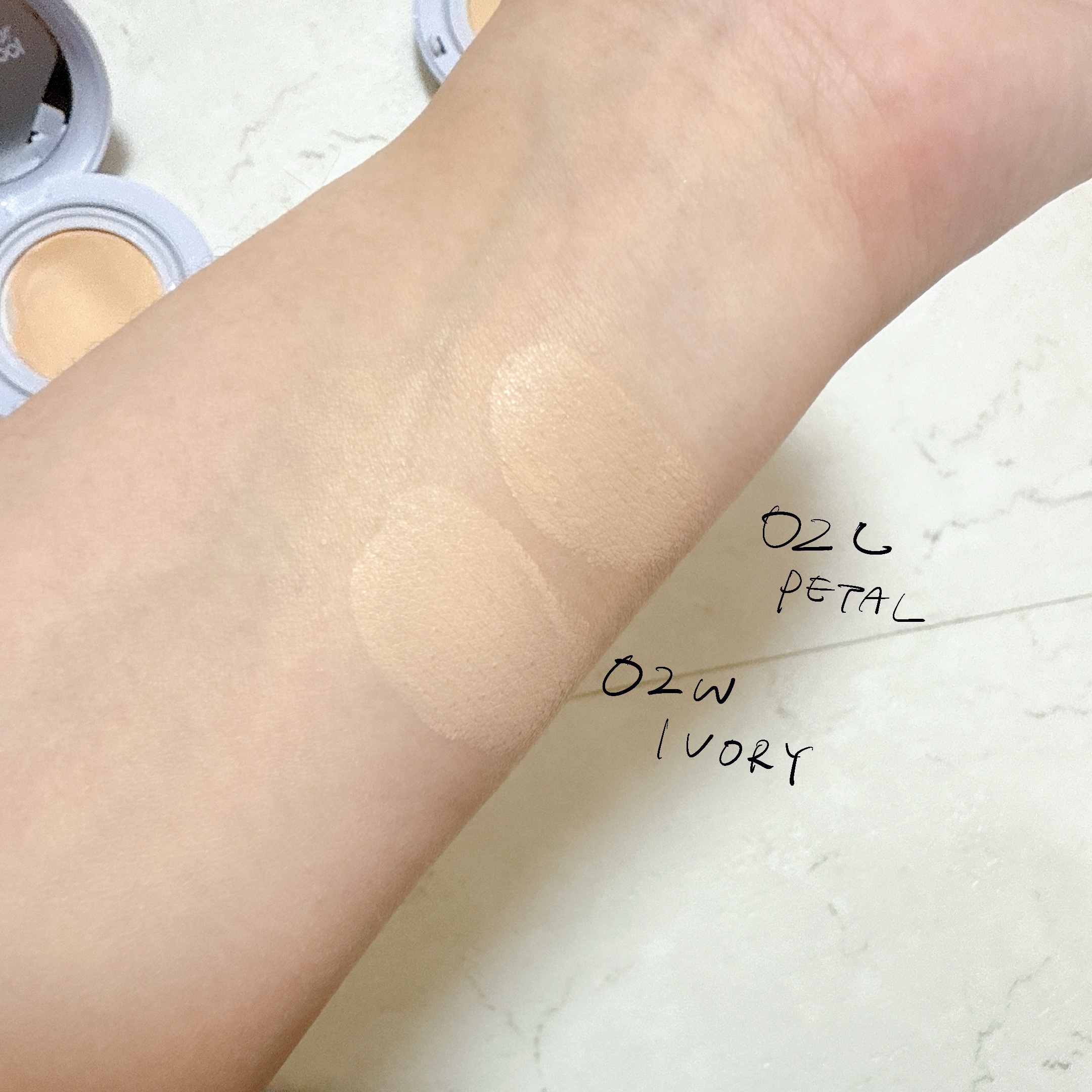 - <#1 ホスリン> 精製水、酸化チタン (CI 77891)、サイクロペンタシロキサン、エチルヘキシルメトキシシンナメート、イソドデカン、エチルヘキシルサリチレート、メチルトリメチコン、ラウリルPEG-9ポリジメチルシロキシエチルジメチコン、ジフェニルシロキシフェニルトリメチコン、グリセリン、プロパンジオール、ブチレングリコールジカプリレート/ジカプレート、ナイアシンアミド、トリメチルシロキシケイ酸、1,2-ヘキサンジオール、ジステアジモニウムヘクトライト、ビフィダ発酵溶解物、ガラクトミセス発酵液、ヒアルロン酸、加水分解ヒアルロン酸、ヒアルロン酸Na、PEG-10ジメチコン、トリデシルトリメリテート、ジメチコン、アクリレーツ/ステアリルアクリレーツ/ジメチコンメタクリレートコポリマー、硫酸マグネシウム、ジメチコン/ビニルジメチコンクロスポリマー、合成フルオロフロゴパイト、ポリグリセリル-3ポリジメチルシロキシエチルジメチコン、オクチルドデカノール、ポリヒドロキシステアリン酸、ステアリン酸、アルミナ、水酸化アルミニウム、トリエトキシカプリリルシラン、エチルヘキシルパルミテート、イソプロピルミリステート、イソステアリン酸、レシチン、ポリグリセリル-4イソステアレート、アデノシン、トリソジウムエチレンジアミンジコハク酸、ポリグリセリル-3ポリリシノレイン酸、イソプロピルチタニウムトリイソステアレート、ネオペンチルグリコールジエチルヘキサノエート、PEG-9ポリジメチルシロキシエチルジメチコン、トコフェロール、ポリプロピルシルセスキオキサン、ブチレングリコール、エチルヘキシルグリセリン、香料、酸化鉄黄 (CI 77492)、酸化鉄赤 (CI 77491)、酸化鉄黒 (CI 77499) <#2c クールペタル> 精製水、酸化チタン (CI 77891)、サイクロペンタシロキサン、エチルヘキシルメトキシシンナメート、イソドデカン、エチルヘキシルサリチレート、メチルトリメチコン、ラウリルPEG-9ポリジメチルシロキシエチルジメチコン、ジフェニルシロキシフェニルトリメチコン、グリセリン、プロパンジオール、ブチレングリコールジカプリレート/ジカプレート、ナイアシンアミド、トリメチルシロキシケイ酸、1,2-ヘキサンジオール、ジステアジモニウムヘクトライト、ビフィダ発酵溶解物、ガラクトミセス発酵液、ヒアルロン酸、加水分解ヒアルロン酸、ヒアルロン酸Na、PEG-10ジメチコン、トリデシルトリメリテート、ジメチコン、アクリレーツ/ステアリルアクリレーツ/ジメチコンメタクリレートコポリマー、硫酸マグネシウム、ジメチコン/ビニルジメチコンクロスポリマー、オクチルドデカノール、合成フルオロフロゴパイト、ポリグリセリル-3ポリジメチルシロキシエチルジメチコン、ポリヒドロキシステアリン酸、ステアリン酸、アルミナ、水酸化アルミニウム、トリエトキシカプリリルシラン、ポリグリセリル-4イソステアレート、エチルヘキシルパルミテート、イソプロピルミリステート、イソステアリン酸、レシチン、アデノシン、トリソジウムエチレンジアミンジコハク酸、ポリグリセリル-3ポリリシノレイン酸、イソプロピルチタニウムトリイソステアレート、ネオペンチルグリコールジエチルヘキサノエート、PEG-9ポリジメチルシロキシエチルジメチコン、トコフェロール、ポリプロピルシルセスキオキサン、ブチレングリコール、エチルヘキシルグリセリン、香料、酸化鉄黄 (CI 77492)、酸化鉄赤 (CI 77491)、酸化鉄黒 (CI 77499) <#2w ウォームアイボリー> 精製水、酸化チタン(CI 77891)、サイクロペンタシロキサン、エチルヘキシルメトキシシンナメート、イソドデカン、エチルヘキシルサリチレート、メチルトリメチコン、ラウリルPEG-9ポリジメチルシロキシエチルジメチコン、ジフェニルシロキシフェニルトリメチコン、グリセリン、プロパンジオール、ブチレングリコールジカプリレート/ジカプレート、ナイアシンアミド、トリメチルシロキシケイ酸、1,2-ヘキサンジオール、ジステアジモニウムヘクトライト、ビフィダ発酵溶解物、ガラクトミセス発酵液、ヒアルロン酸、加水分解ヒアルロン酸、ヒアルロン酸Na、PEG-10ジメチコン、トリデシルトリメリテート、ジメチコン、アクリレーツ/ステアリルアクリレーツ/ジメチコンメタクリレートコポリマー、硫酸マグネシウム、ジメチコン/ビニルジメチコンクロスポリマー、オクチルドデカノール、合成フルオロフロゴパイト、ポリグリセリル-3ポリジメチルシロキシエチルジメチコン、ポリヒドロキシステアリン酸、ステアリン酸、アルミナ、水酸化アルミニウム、トリエトキシカプリリルシラン、ポリグリセリル-4イソステアレート、エチルヘキシルパルミテート、イソプロピルミリステート、イソステアリン酸、レシチン、アデノシン、トリソジウムエチレンジアミンジコハク酸、ポリグリセリル-3ポリリシノレイン酸、イソプロピルチタニウムトリイソステアレート、ネオペンチルグリコールジエチルヘキサノエー