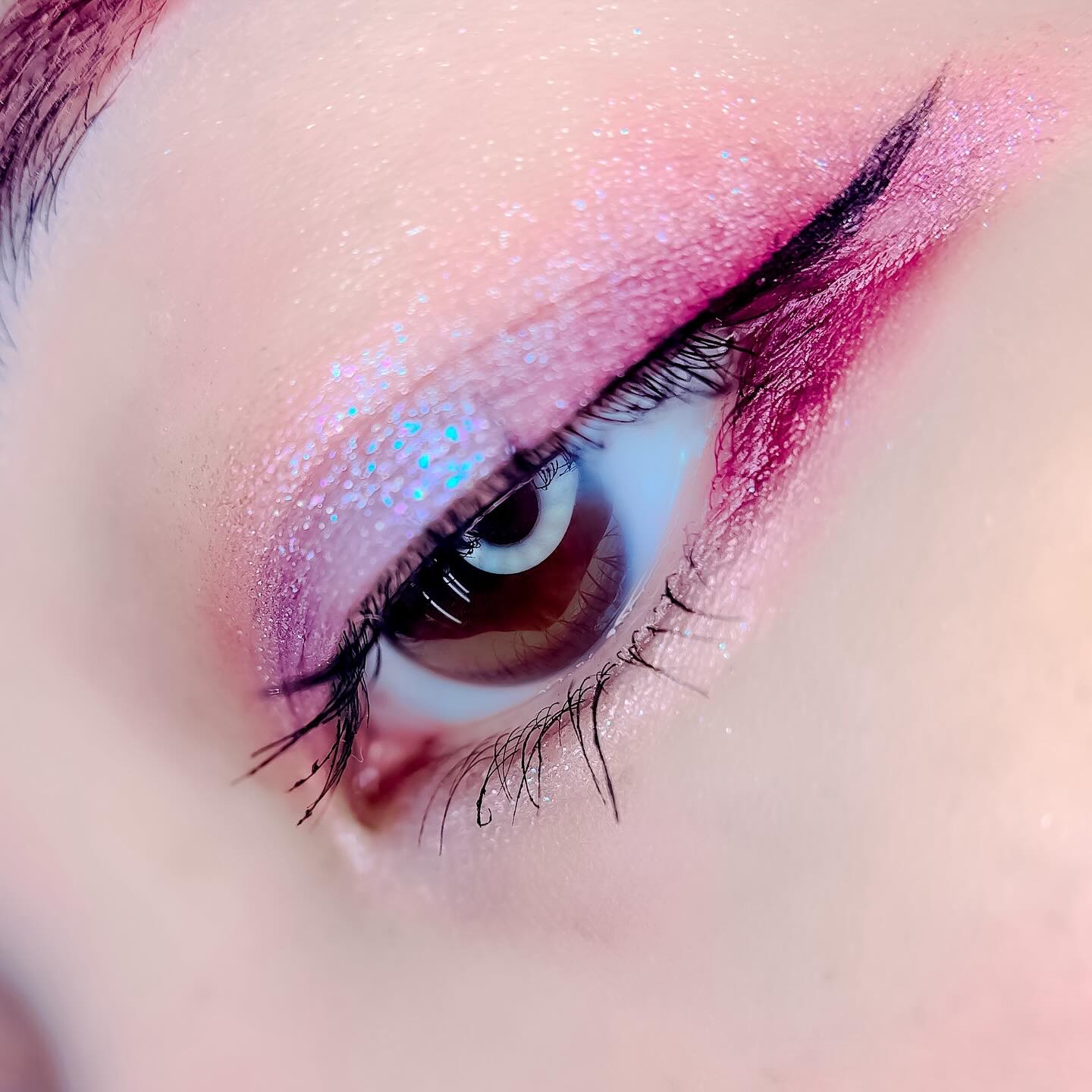 ピンクにグレージュも良いですね👌💗 今日は可愛らしい感じにしてみました💕 上下瞼黒目〜目頭側にラメを塗ってキラキラさせております🤩 目尻はマットのピンクを濃いめに重ねて💗 グレージュのアイライナーと相性◎
