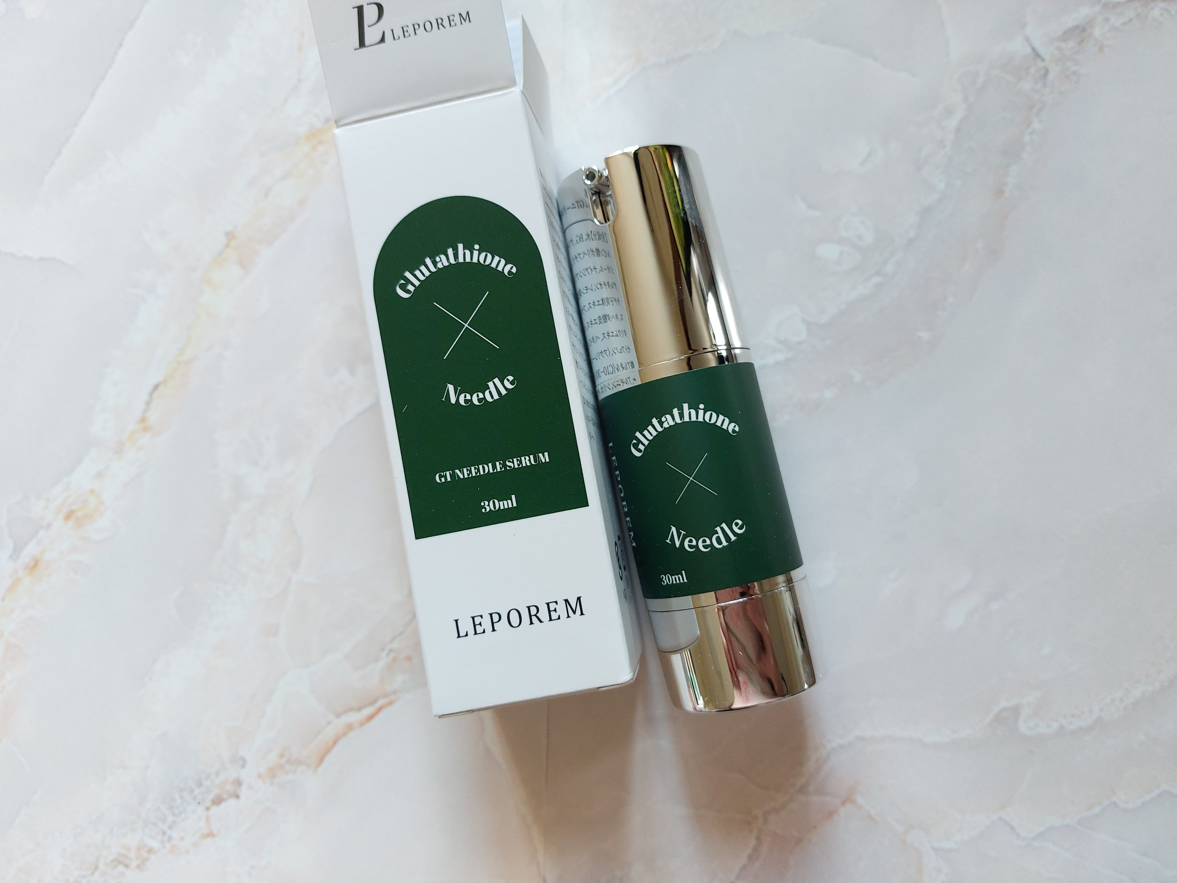 LEPOREMGTニードル美容液1本(30mL)あたりに約75万本のシリカ由来マイクロニードル配合のセラム3種類あるうちグルタチオンGTニードルセラムは透明感・トーンアップをサポートしてくれるそう洗顔後1番初めに使用みずみずしいテクスチャーで...