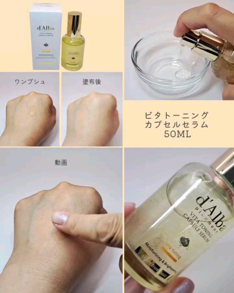 dAlbaビタトーニングセラムトナービタトーニングカプセルセラムホワイトトリュフモイスチャーライジングセラムビタトーニングカプセルクリームビタミンが導く上質肌へビタトーニングセラムトナーは、みずみずしいテクスチャーで使いやすかったですピリピリ...
