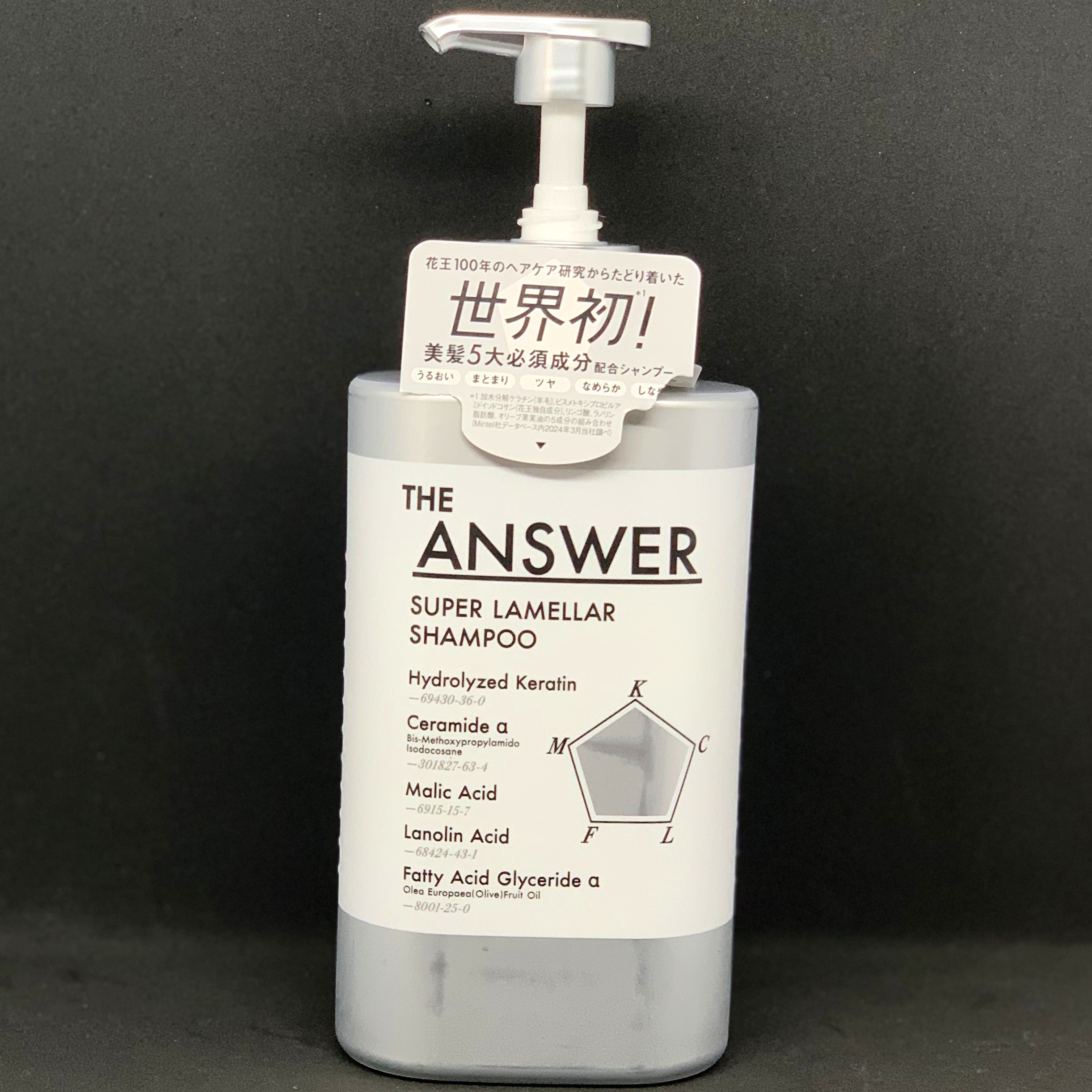 - 世界初!*¹ 花王100年のヘアケア研究からたどり着いた、美髪5大必須成分*²(補修)配合シャンプー うるおい、まとまり、ツヤめき、なめらかで、しなやかな髪へ ●シャンプー内に構築したラメラ層に、ケア成分を蓄える「ラメラプラットフォーム技術」採用 ●美容液のようなテクスチャー ●「塗り洗い」で、ケア成分を含んだ泡が髪全体に行き渡る ●サルフェート・パラベン・合成着色料フリー、ノンシリコーン処方 ●凛として洗練されたベルガモット&ダフネの香り *¹ 加水分解ケラチン(羊毛)、ビスメトキシプロピルアミドイソドコサン(花王独自成分)、リンゴ酸、ラノリン脂肪酸、オリーブ果実油の5成分の組み合わせ(Mintel社データベース内2024年3⽉当社調べ) *² 加水分解ケラチン(羊毛)、セラミドα(ビスメトキシプロピルアミドイソドコサン)、リンゴ酸、ラノリン脂肪酸、脂肪酸グリセリドα(オリーブ果実油)
