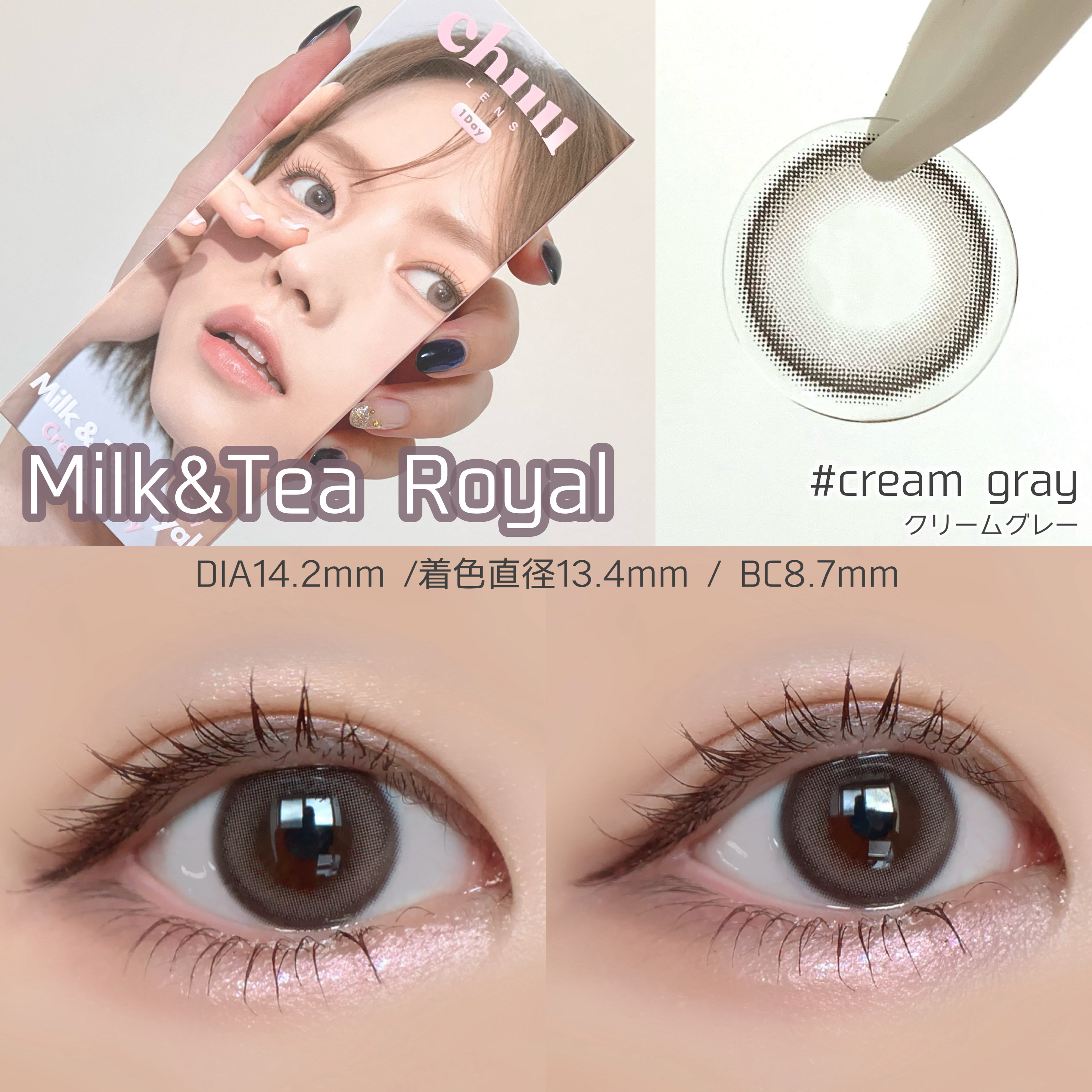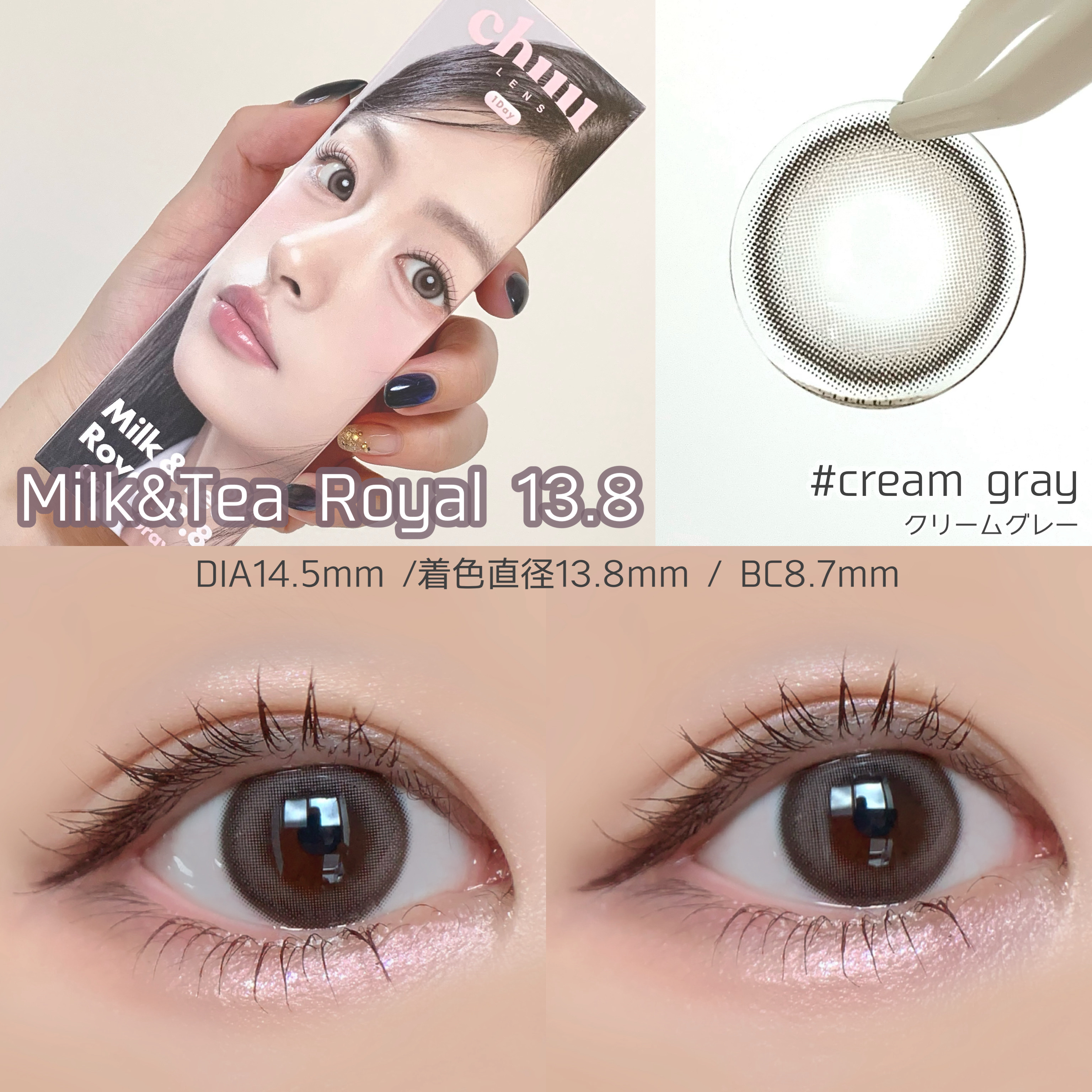 \新発売/13.8mm盛れるクリームグレー✼••┈┈••✼••┈┈••✼••┈┈••✼••┈┈••✼chuulens▶︎Milk&TeaRoyal13.8CreamGrayチューレンズシグニチャーラインの人気カラーが、より盛れる13.8mmの...