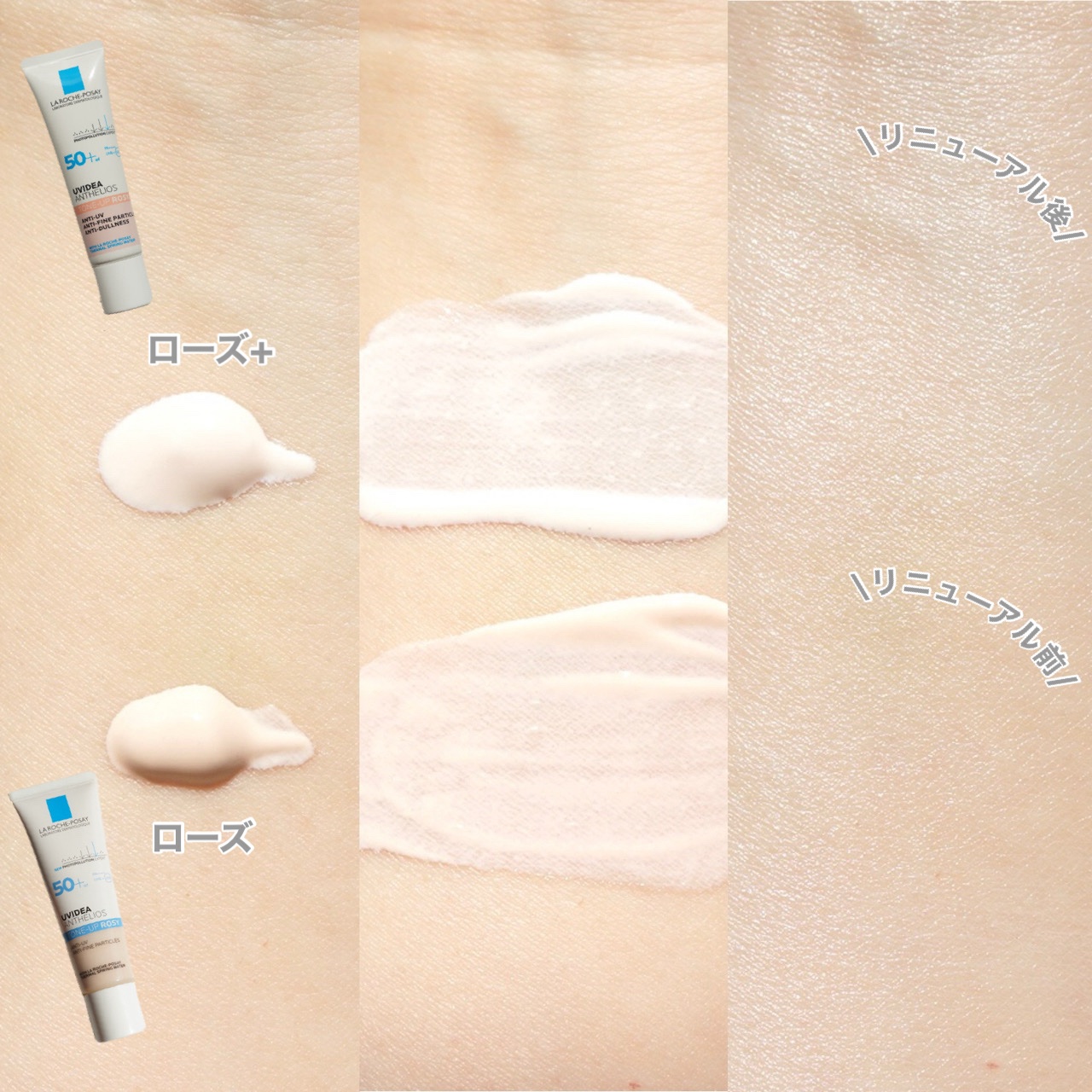 - 敏感肌用スキンケアUV No.1*が、 皮膚科学にも基づいてさらに進化。トーンアップUV ローズ+ 全部、はね返す 。 光、くすみ*1、紫外線も。 生ツヤ肌トーンアップ*2UV ●光の美しい反射に、新 グロウピンク設計 反射力アップ*2 + 黄ぐすみ補正*2 なめらかなツヤ肌*2に。 ●日中くすみ*1リスクに、新 スキンケア膜日焼け止め 整肌成分:ビタミンC誘導体*3 + ビタミンE *4 配合 なめらかケア成分:LHA *5 配合 塗るたび肌が整い、明るくつるんとした肌印象に。 ●紫外線対策に、新 UVフィルター設計*6 SPF50+・PA++++ 8種*6のフィルターで、ロングUVAを含む紫外線をしっかり防御。 ●皮膚科医の協力のもとテスト済み*7 ●ニキビのもとになりにくい処方*8 ●アジア人の敏感な肌でテスト済み*7 ●花粉など外的刺激から肌を守る ●石けん・洗顔料でオフ ●無香料 ●パラベンフリー *1 乾燥による *2 メイクアップ効果による。 *3 アスコルビルグルコシド(製品の抗酸化剤・整肌成分) *4 トコフェロール(製品の抗酸化剤・整肌成分) *5 カプリロイルサリチル酸(角質柔軟成分) *6 酸化チタン(紫外線散乱剤)、エチルヘキシルトリアゾン、ビスエチルヘキシルオキシフェノールメトキシフェニルトリアジン、t-ブチルメトキシジベンゾイルメタン、テレフタリリデンジカンフルスルホン酸、フェニルベンズイミダゾールスルホン酸、ドロメトリゾールトリシロキサン、ジエチルアミノヒドロキシベンゾイル安息香酸ヘキシル(全て、紫外線吸収剤) *7 すべての人に肌トラブルがおきないわけではありません。 *8 すべての人にニキビのもとができないわけではありません。