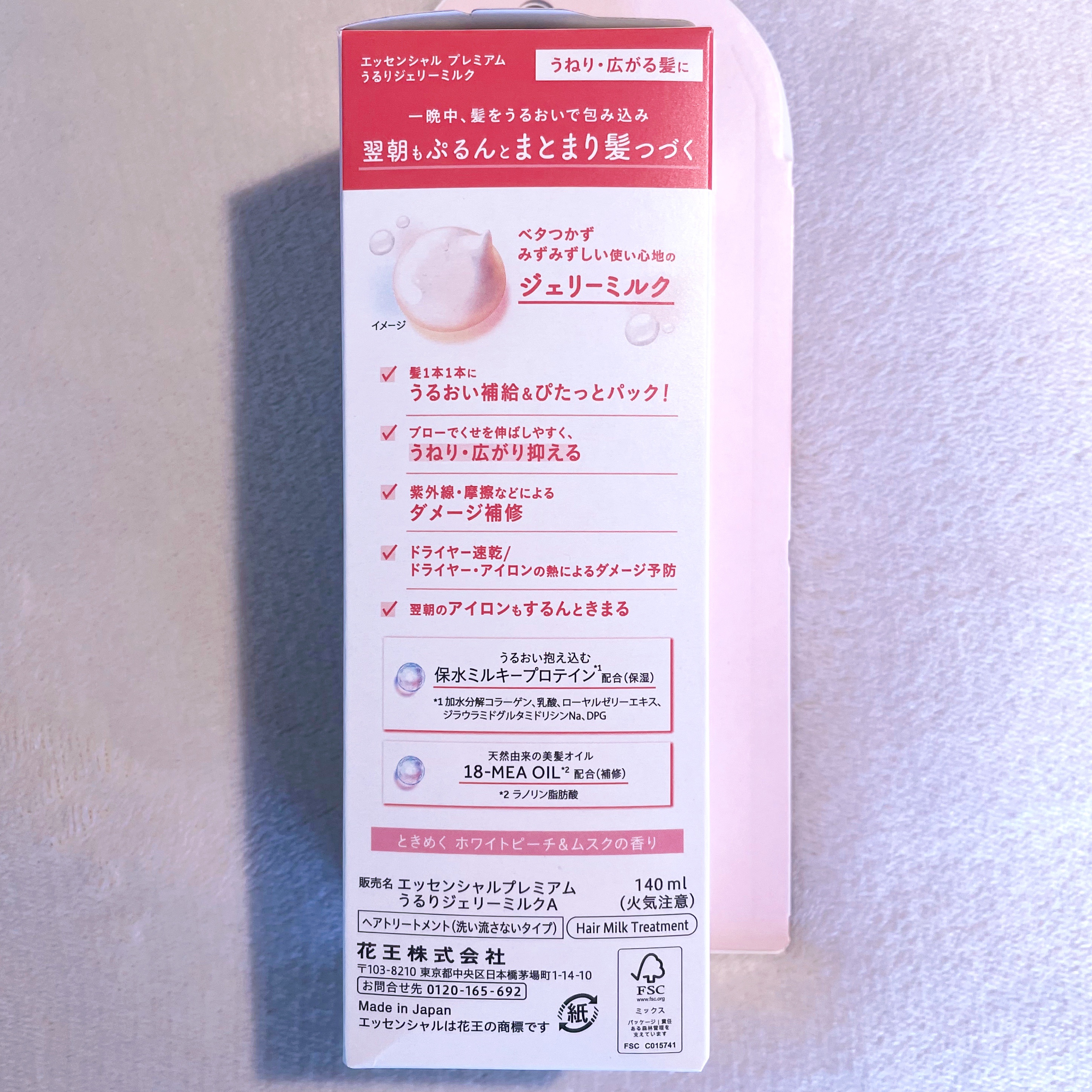 【Essential】うねり・広がる髪に!エッセンシャルプレミアムうるりジェリーミルク🧴♡一晩中、髪をうるおいで包み込み翌朝もぷるんとまとまり髪つづく!ベタつかずみずみずしい使い心地のジェリーミルク💕紫外線・摩擦などによるダメージ補修!ドライ...