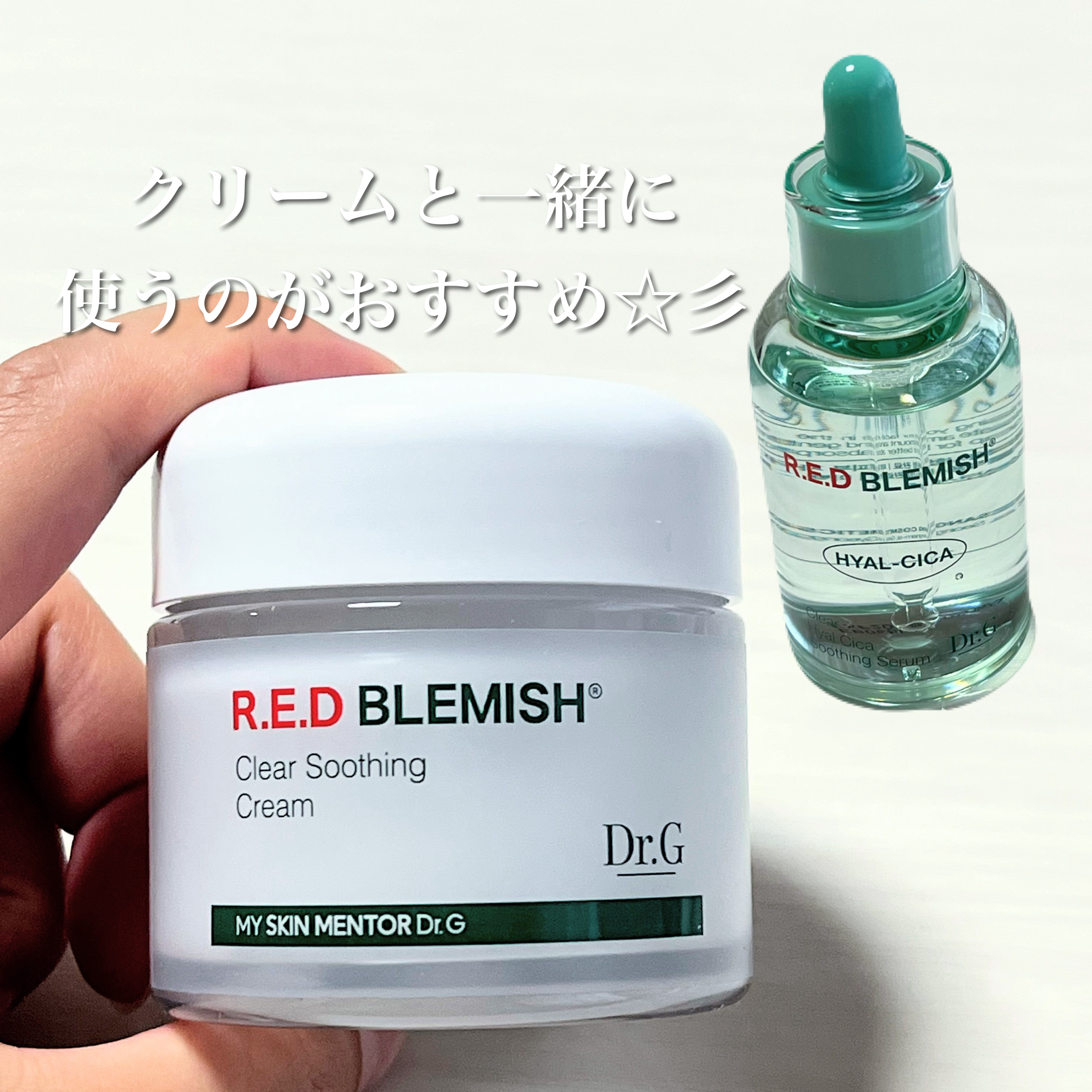 Dr.G夏場やゆらぎがちな肌にぴったりなシリーズ•レッドブレミッシュヒアルシカ水分セラムゆるいとろみのあるテクスチャーで水分感たっぷりな使い心地肌馴染みがべたつかないから朝も使いやすい•レッドブレミッシュクリアスージングクリームとろんとした水...