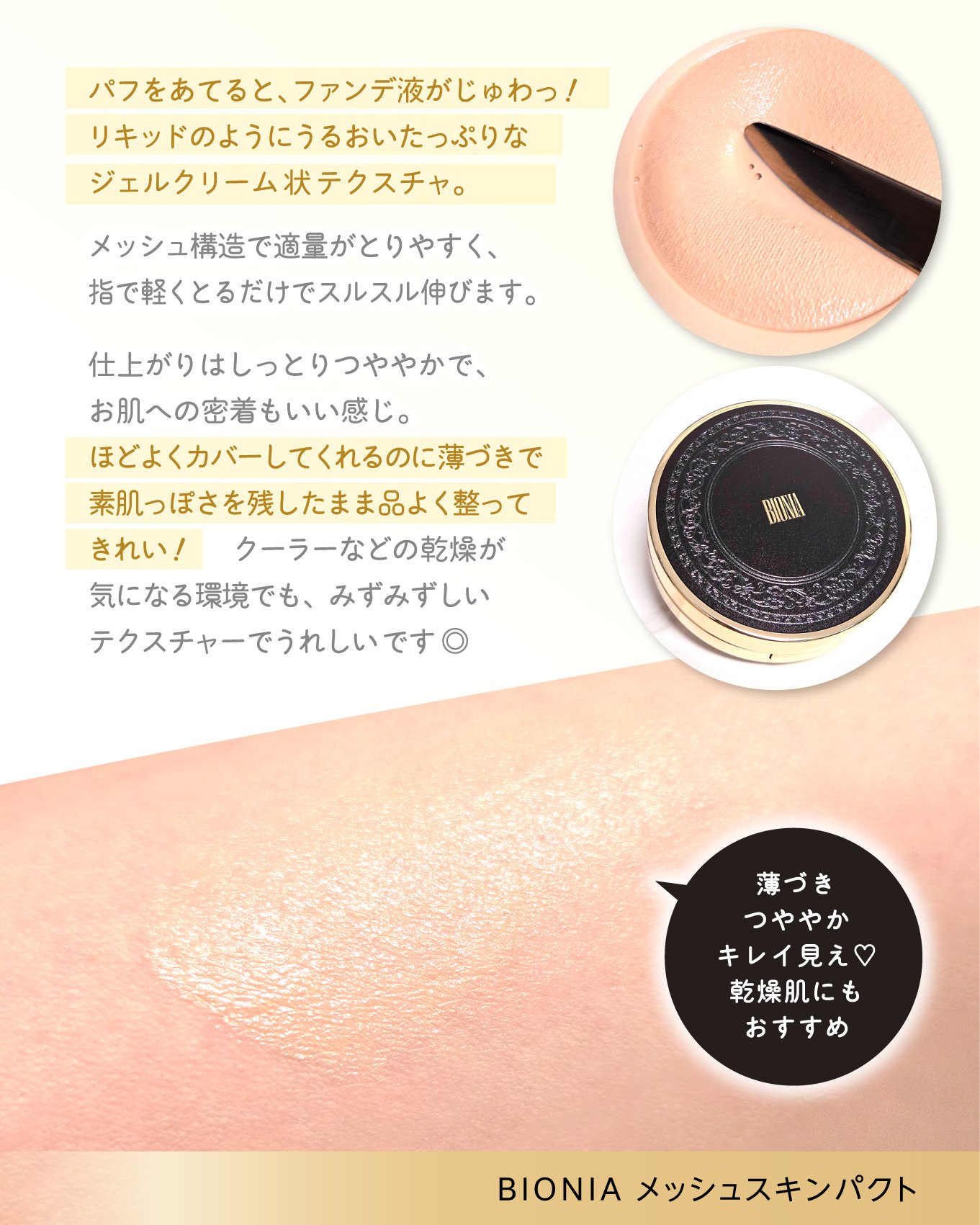#BIONIA(ビオニア)メッシュスキンパクト美容家IKKOさんプロデュースのジェルクリームファンデーション‼️厚塗り感なく自然にカバーして誰でも簡単に素肌美へ✨ジェルクリーム状のメッシュファンデーションでとってもみずみずしいテクスチャ...