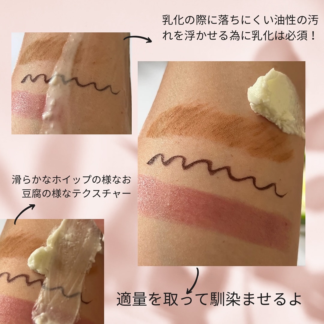 摩擦を少なくして汚れを浮かせてオフしてくれるクレイとエマルジョンオイルで素早く洗い流してくれるよ👍🏻 ̖́-︎ スキンケア発想の保湿成分配合だから、つっぱらず、うるおいをキープしてくれるんだって😳✨ オイルなのにベタっとしないサラッとしたテクスチャー。メイクに馴染ませると、擦らずしてメイクが浮いてくる感じでオフしてくれたよ🫰🏻💗