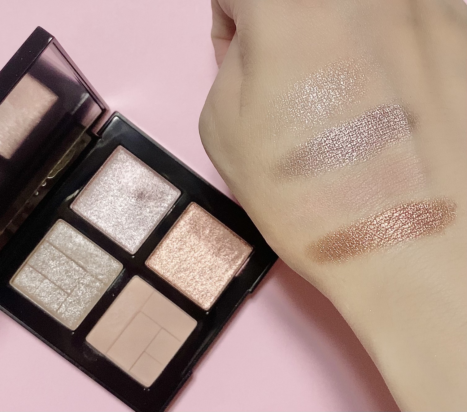 どちらも可愛い色味なのですが単品だとBR-1は少し目元がくすんで見えて似合わず。。。 そしてPK-1は真ん中の色味が高発色すぎて薄くつけても似合わず。。。という結果にw でも色味は好きなので上手く使えないかなぁと考えた所両方のパレットの真ん中の色を混ぜてみると絶妙なピンクブラウンになってすごく好きな色味になりました♫ これなら自分にも似合うしBR-1の若干くすむ感じもなくなりPK-1の高発色もいい感じに抑えられるという最高の組み合わせでした(*´꒳`*) ブラウンメイクだと目元がくすんだり高発色のピンクメイクだと奇抜になりすぎて似合わない方にもおすすめのメイクです!