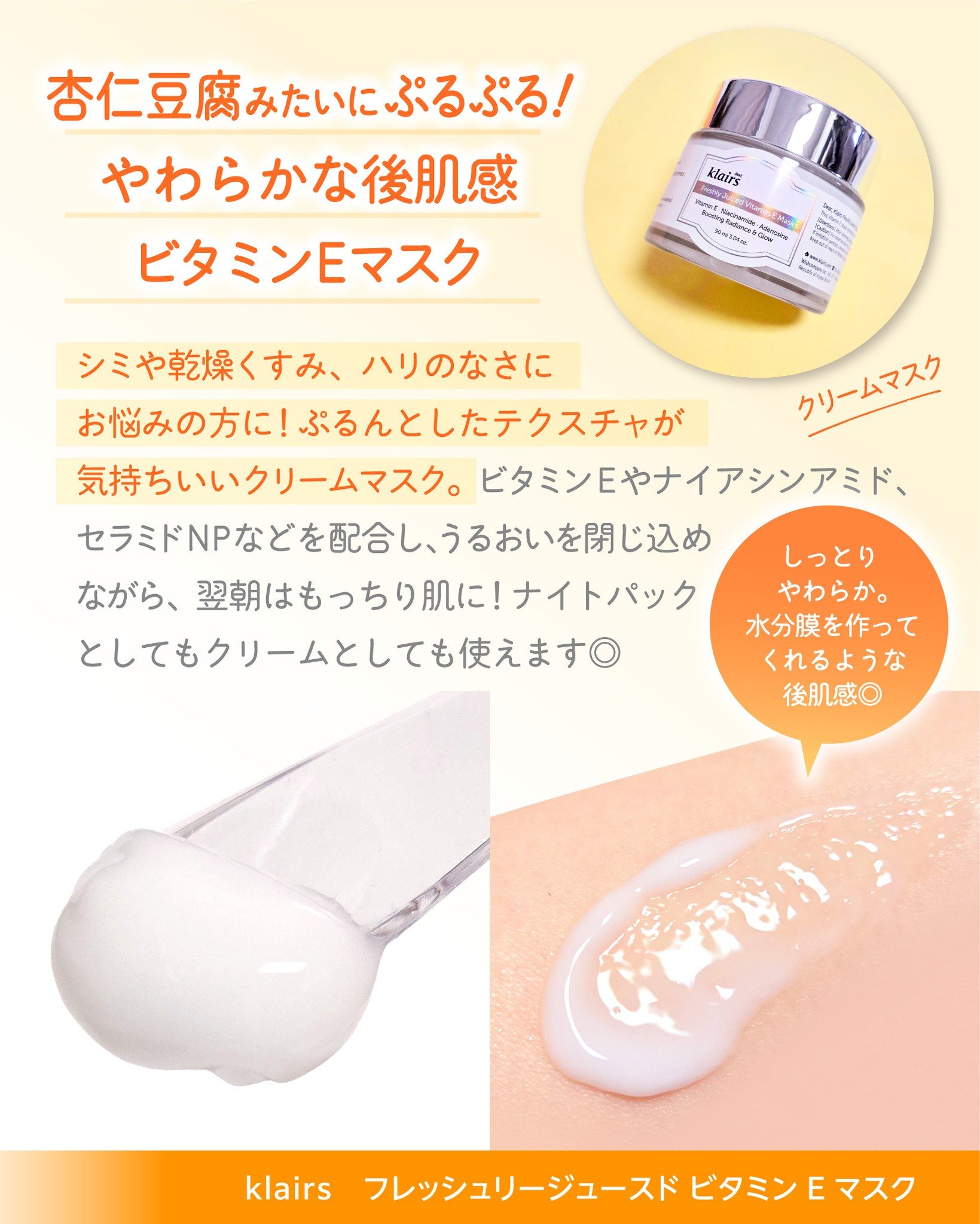 Klairs フレッシュリージュースドビタミンEマスク(90g) | 2,700円 |